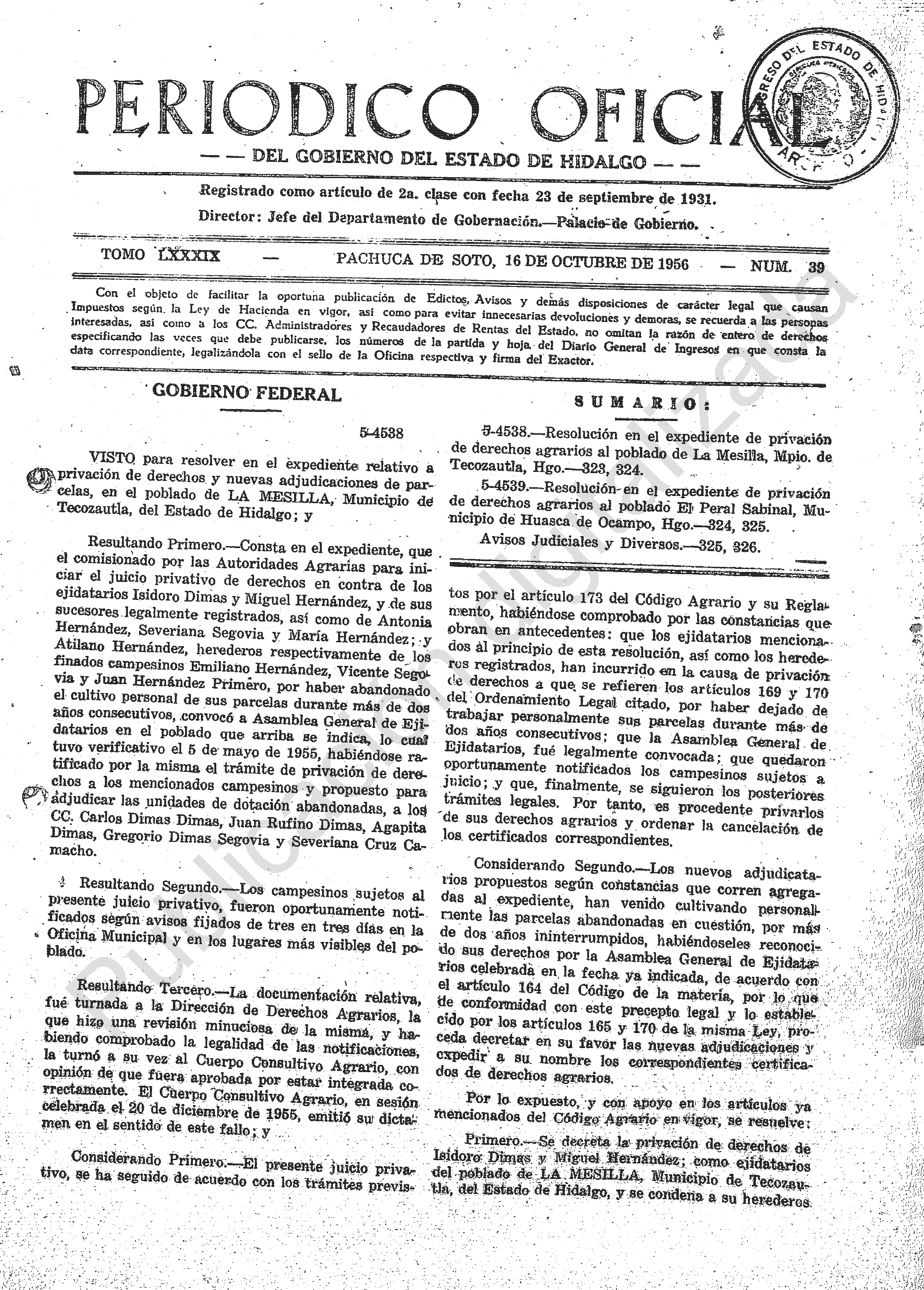 Descargar Periódico Oficial Ordinario 0 del 16 de octubre de 1956