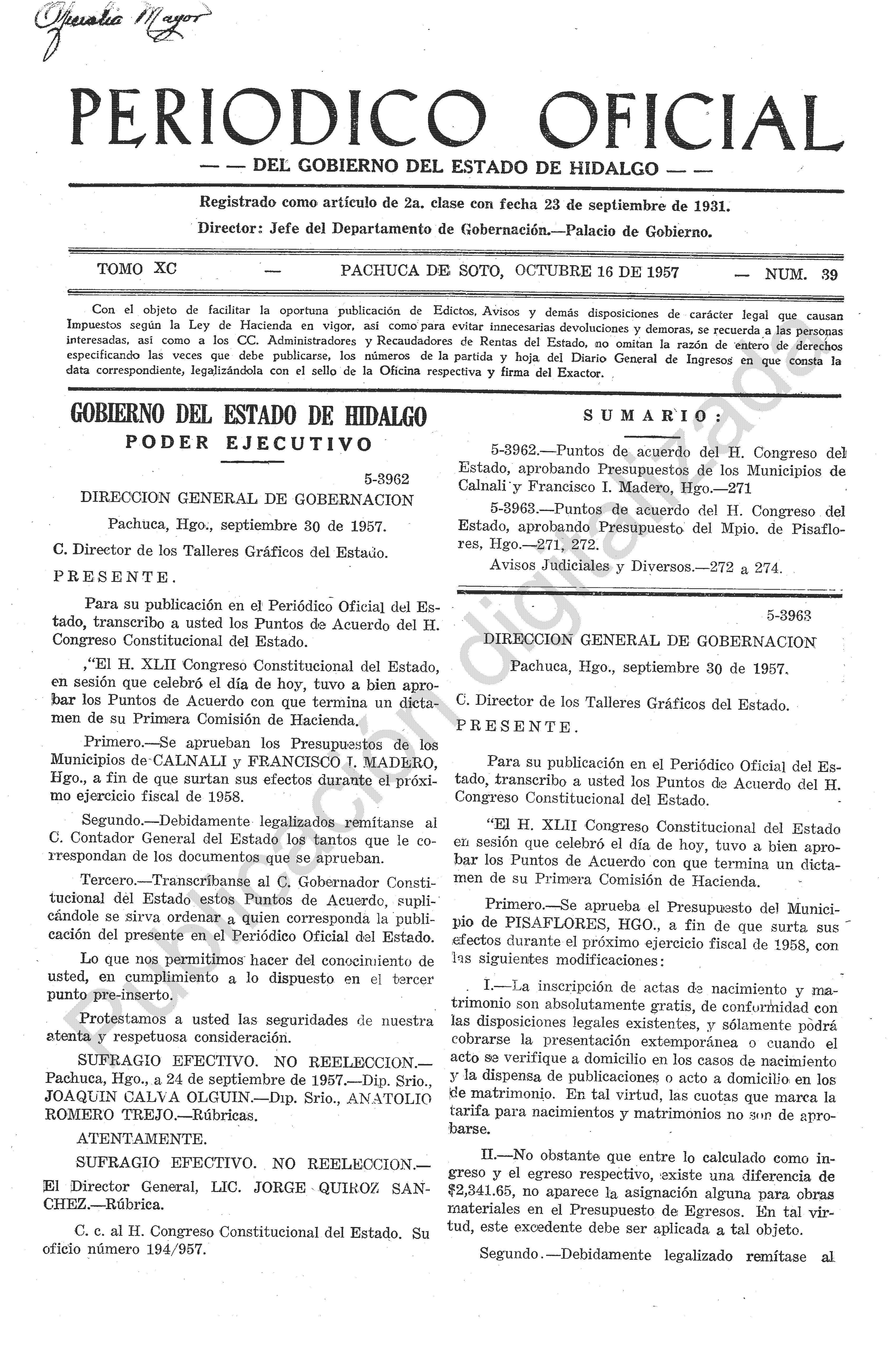 Descargar Periódico Oficial Ordinario 0 del 16 de octubre de 1957