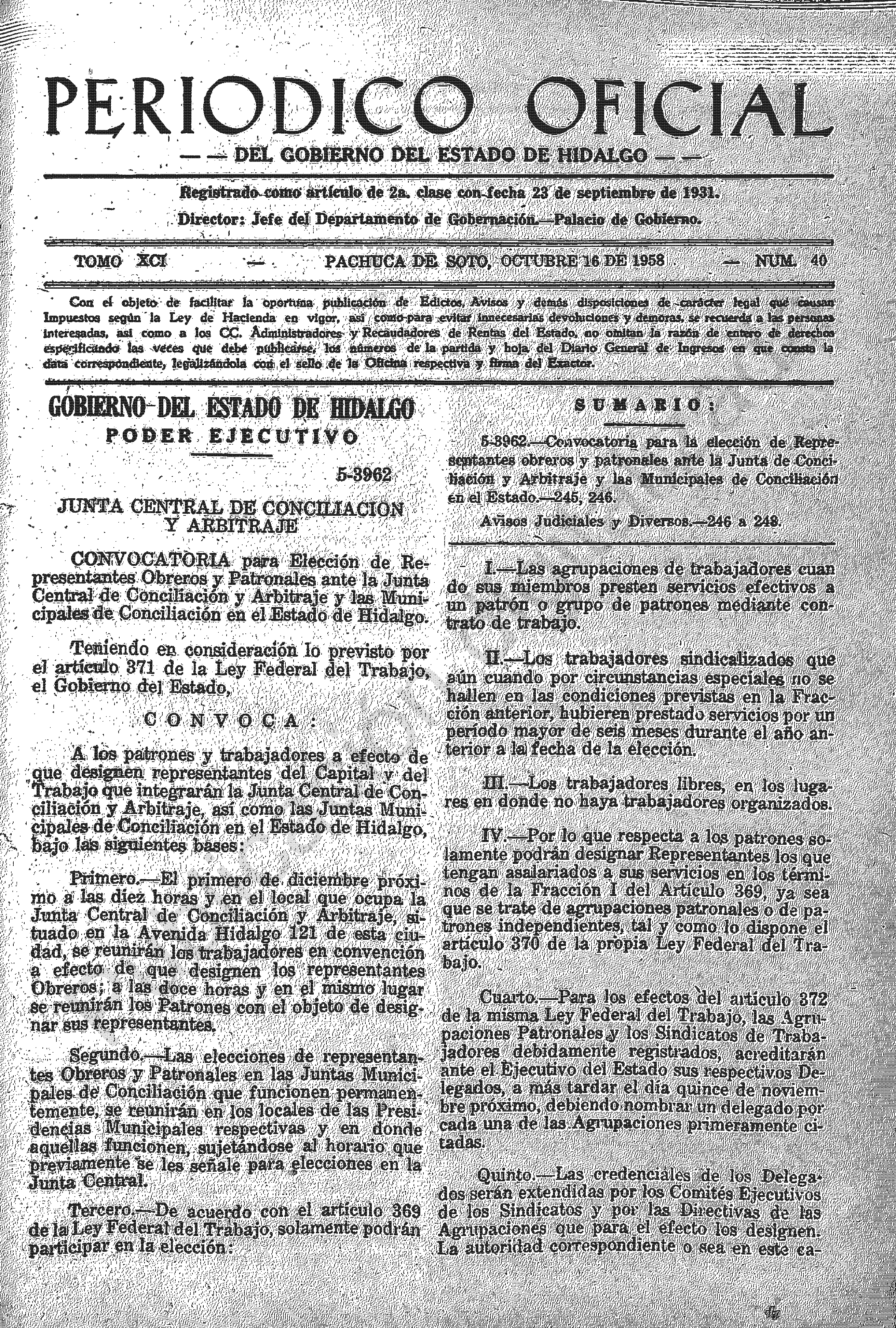Descargar Periódico Oficial Ordinario 0 del 16 de octubre de 1958
