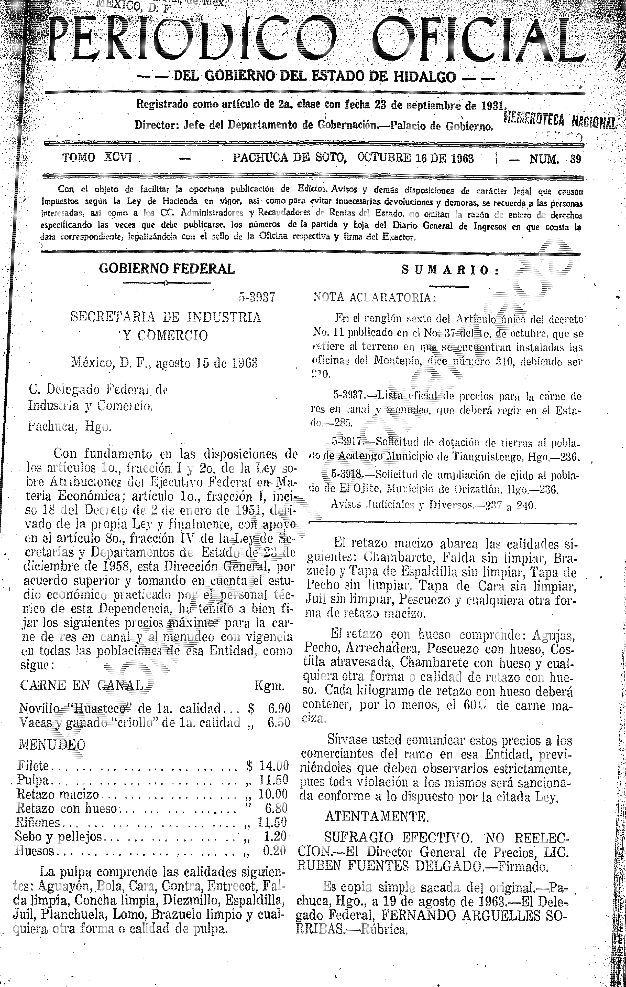 Descargar Periódico Oficial Ordinario 0 del 16 de octubre de 1963
