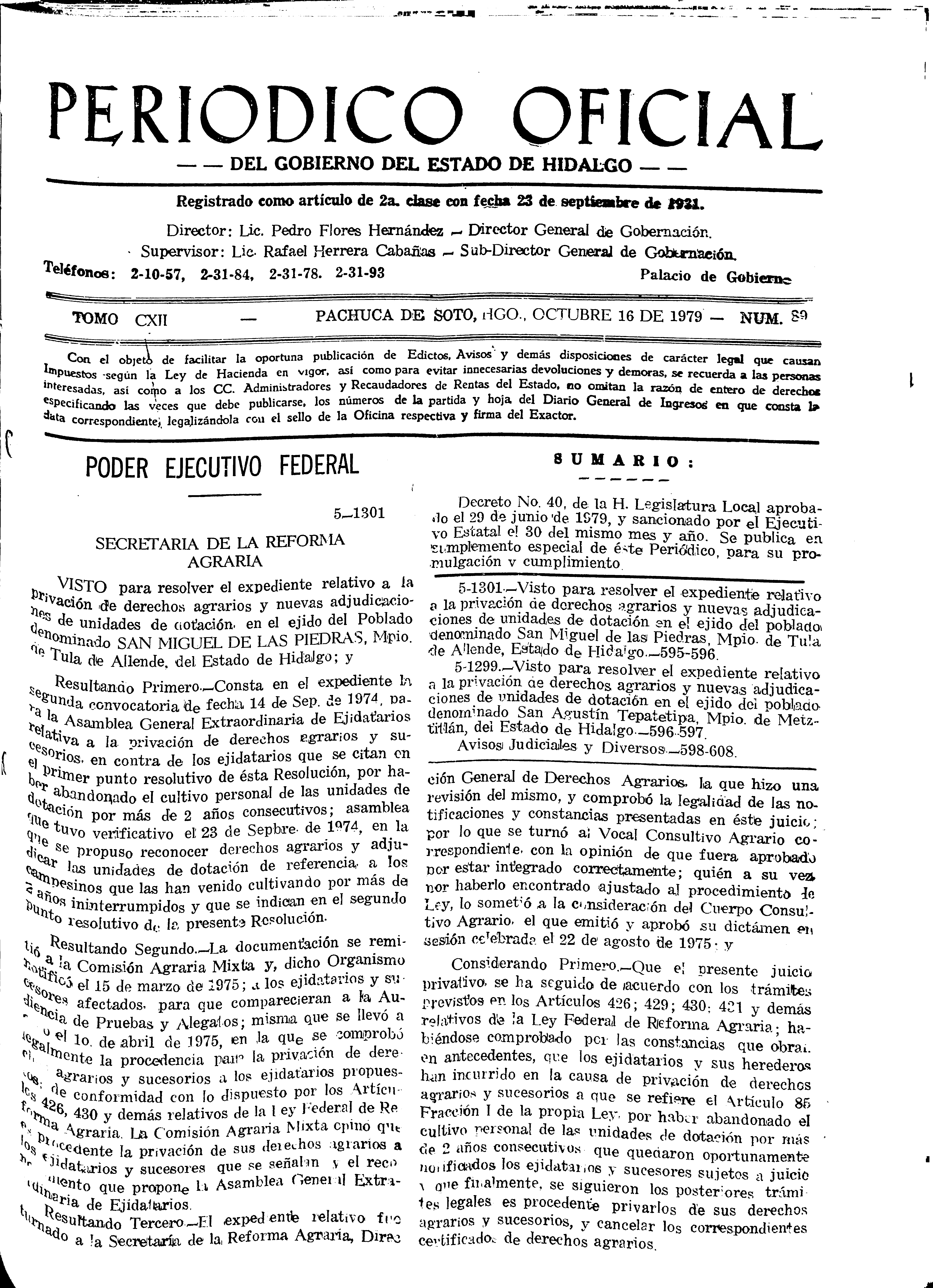 Descargar Periódico Oficial Ordinario 0 del 16 de octubre de 1979