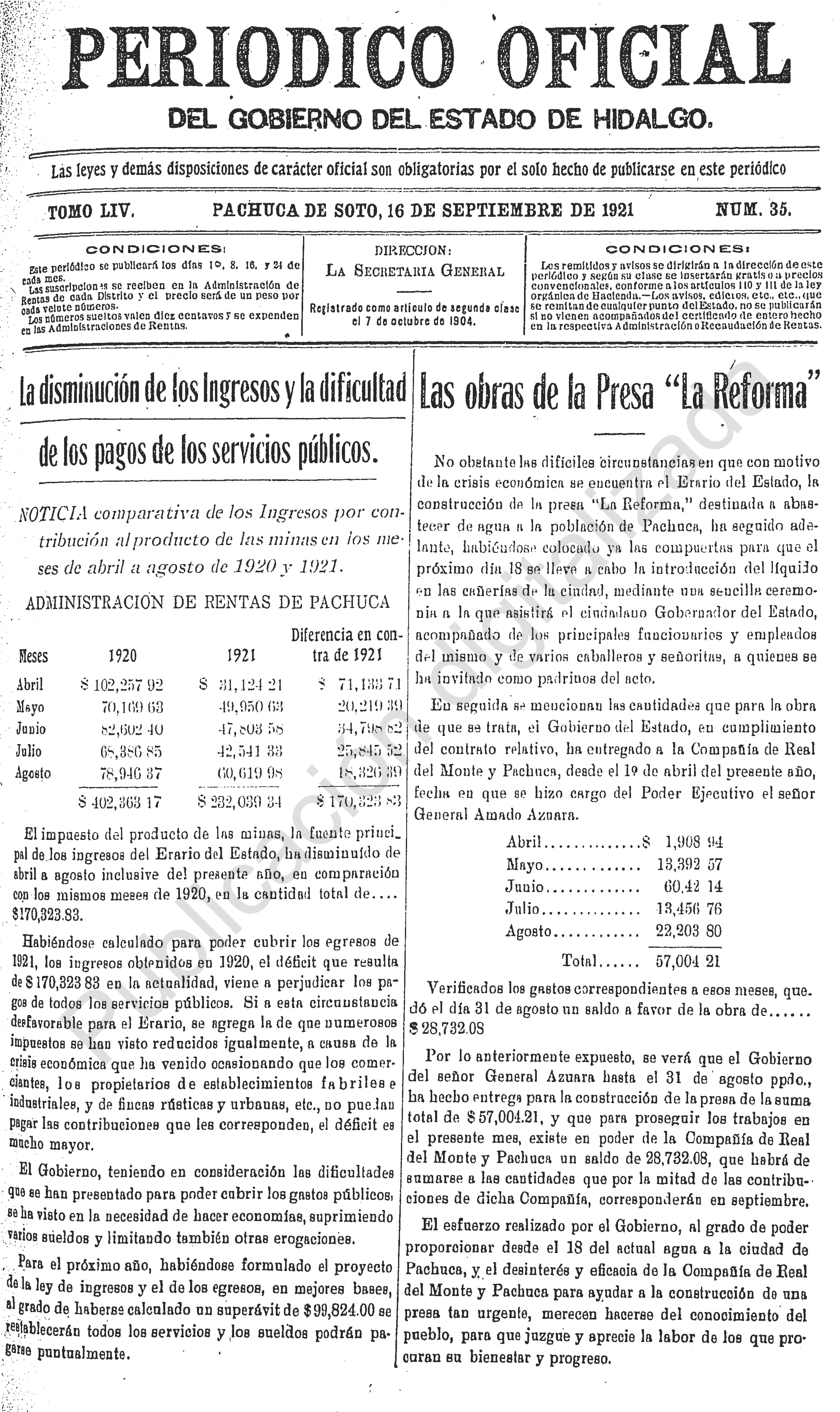 Descargar Periódico Oficial Ordinario 0 del 16 de septiembre de 1921El portal web del Periódico Oficial del Estado de hidalgo es el único medio de difusión oficial del Gobierno del Estado de Hidalgo
