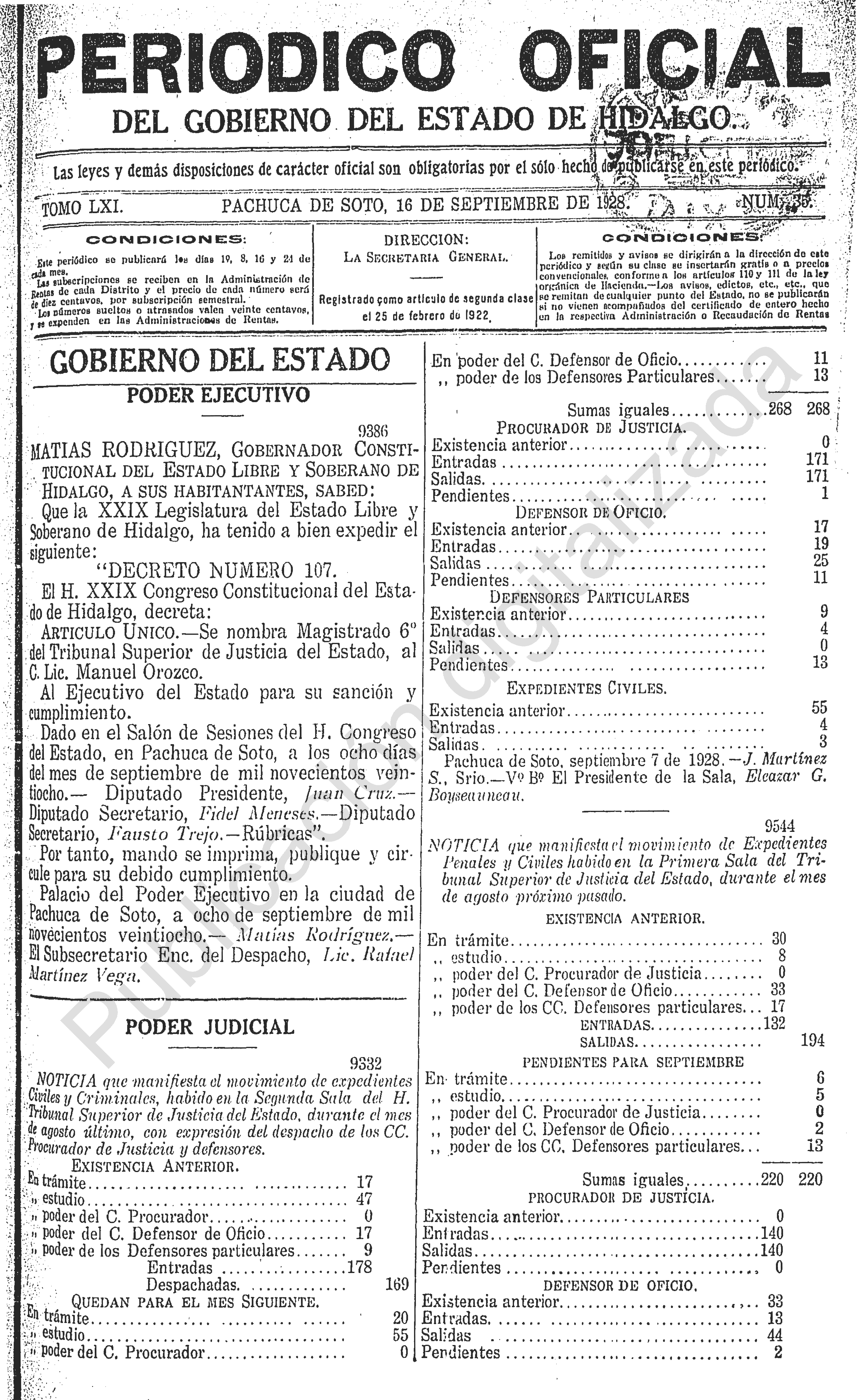 • 9386.-DECRETO NUMERO 107.-Se nombra Magistrado 6° del Tribunal Superior de Justicia del Estado, al C. Lic. Manuel Orozco.