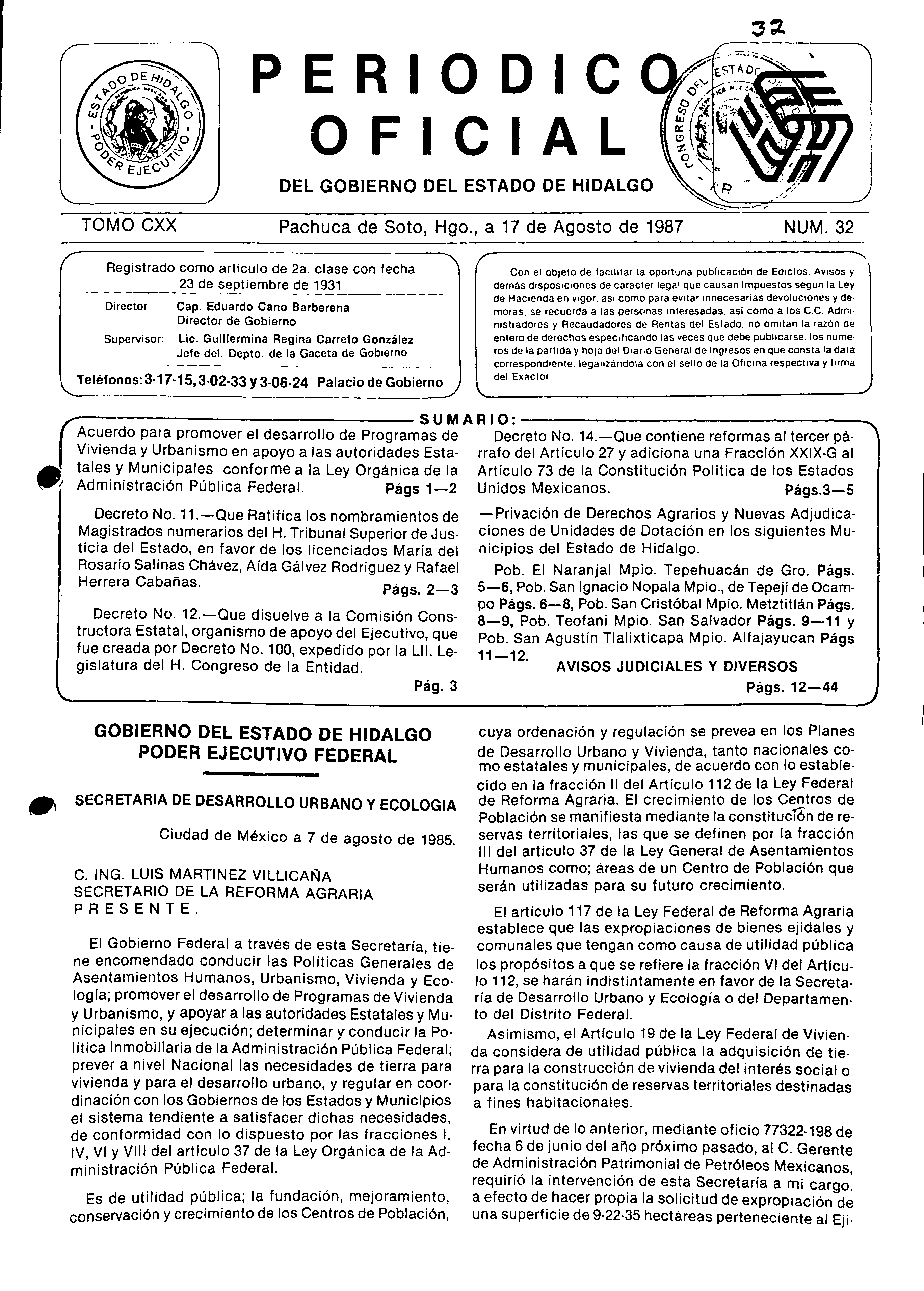 Descargar Periódico Oficial Ordinario 0 del 17 de agosto de 1987