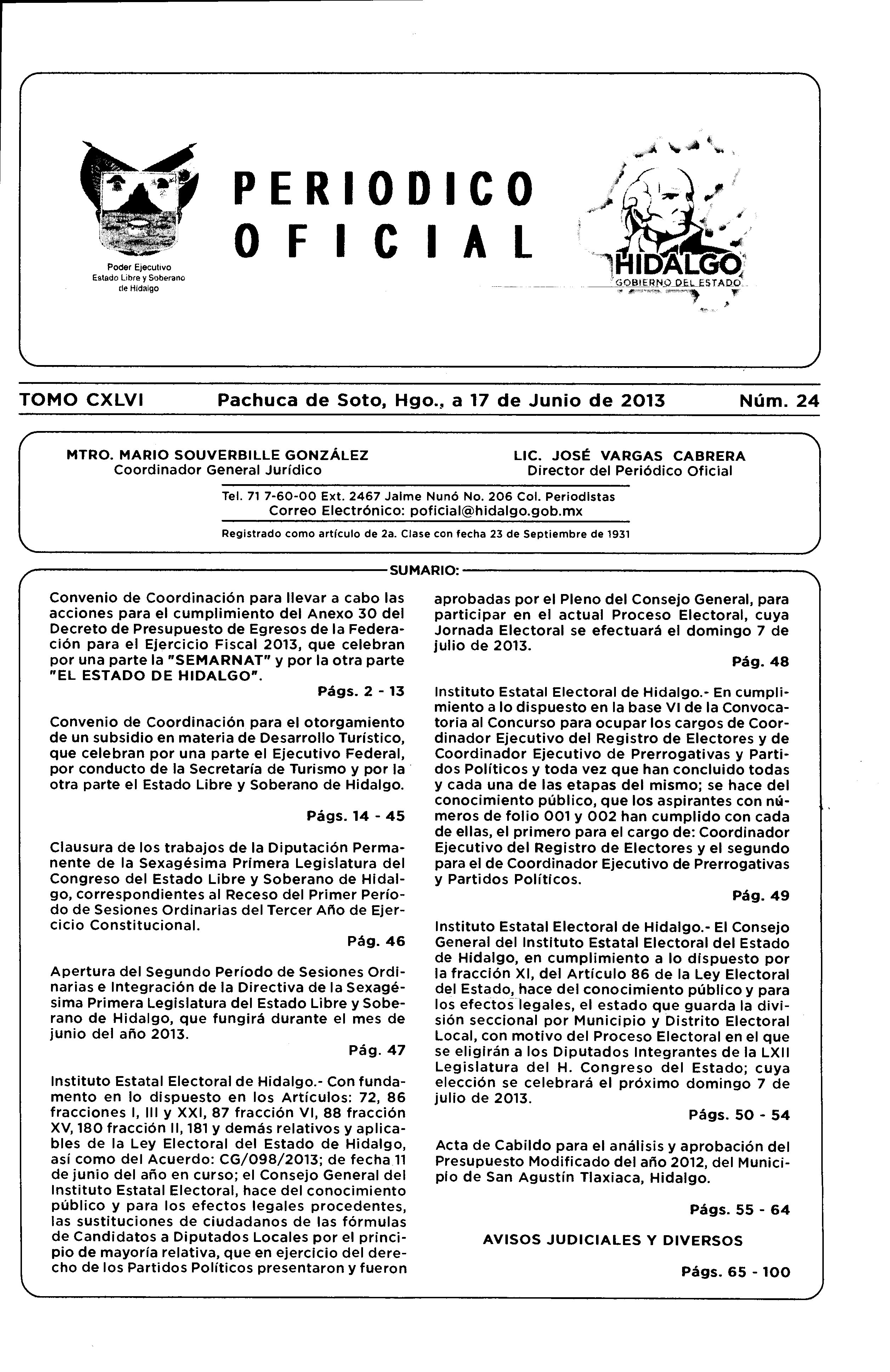 Periódico Oficial Ordinario 0 del 17 de junio de 2013