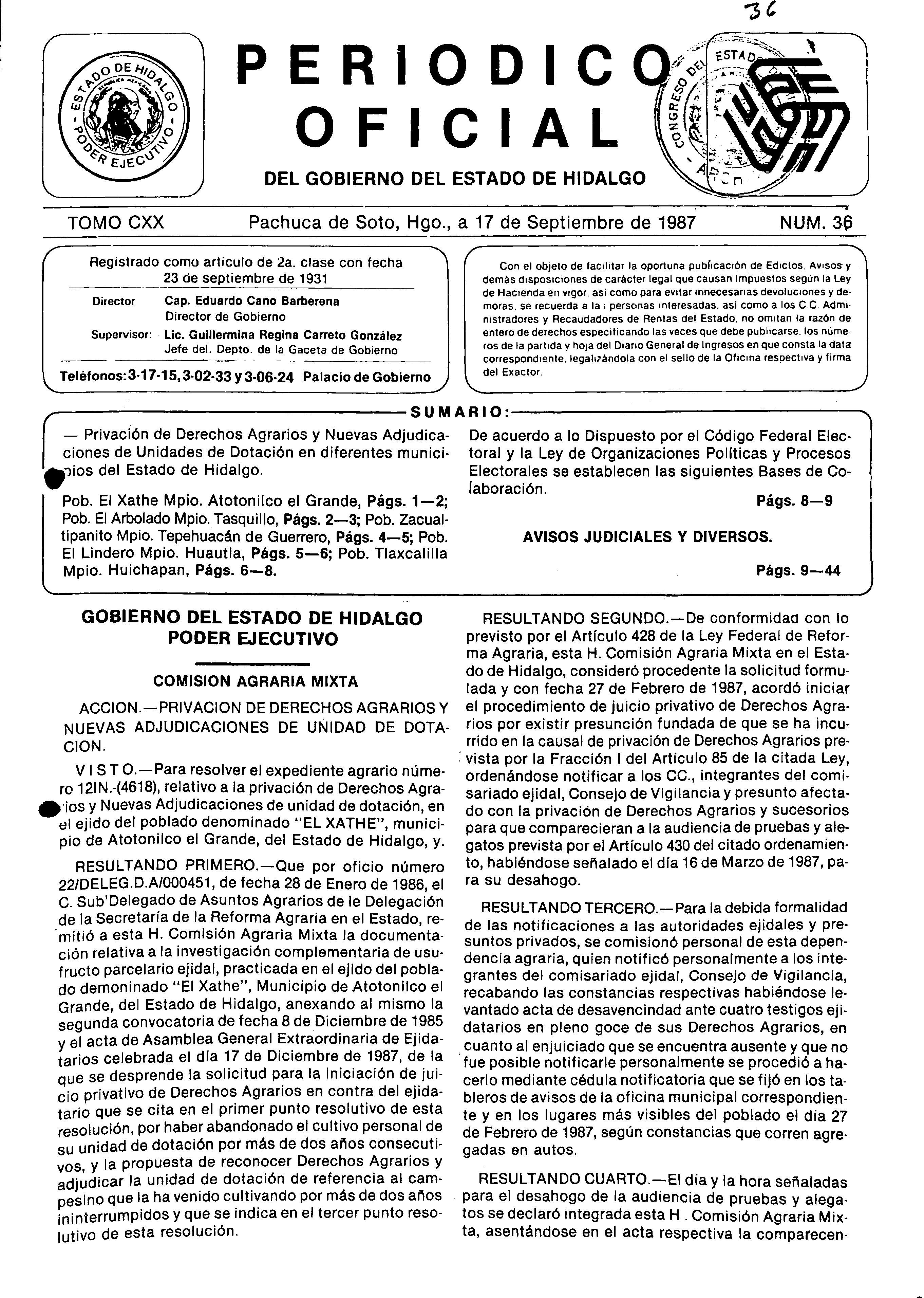 Descargar Periódico Oficial Ordinario 0 del 17 de septiembre de 1987