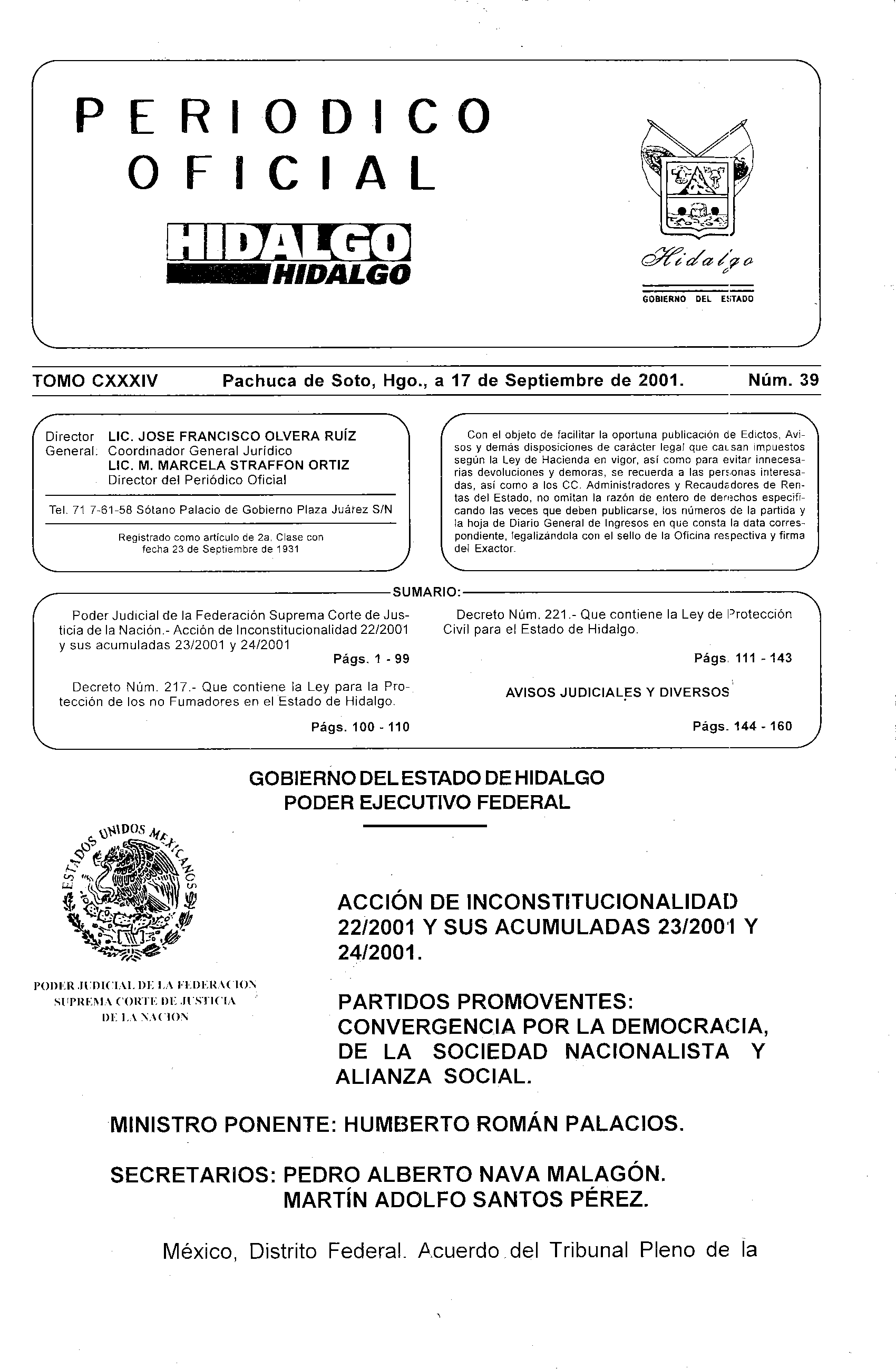 Periódico Oficial Ordinario 0 del 17 de septiembre de 2001