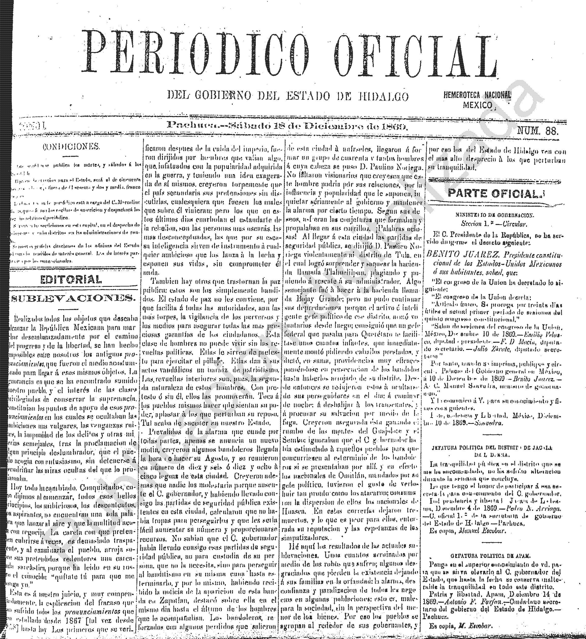 Descargar Periódico Oficial Ordinario 0 del 18 de diciembre de 1869El portal web del Periódico Oficial del Estado de hidalgo es el único medio de difusión oficial del Gobierno del Estado de Hidalgo