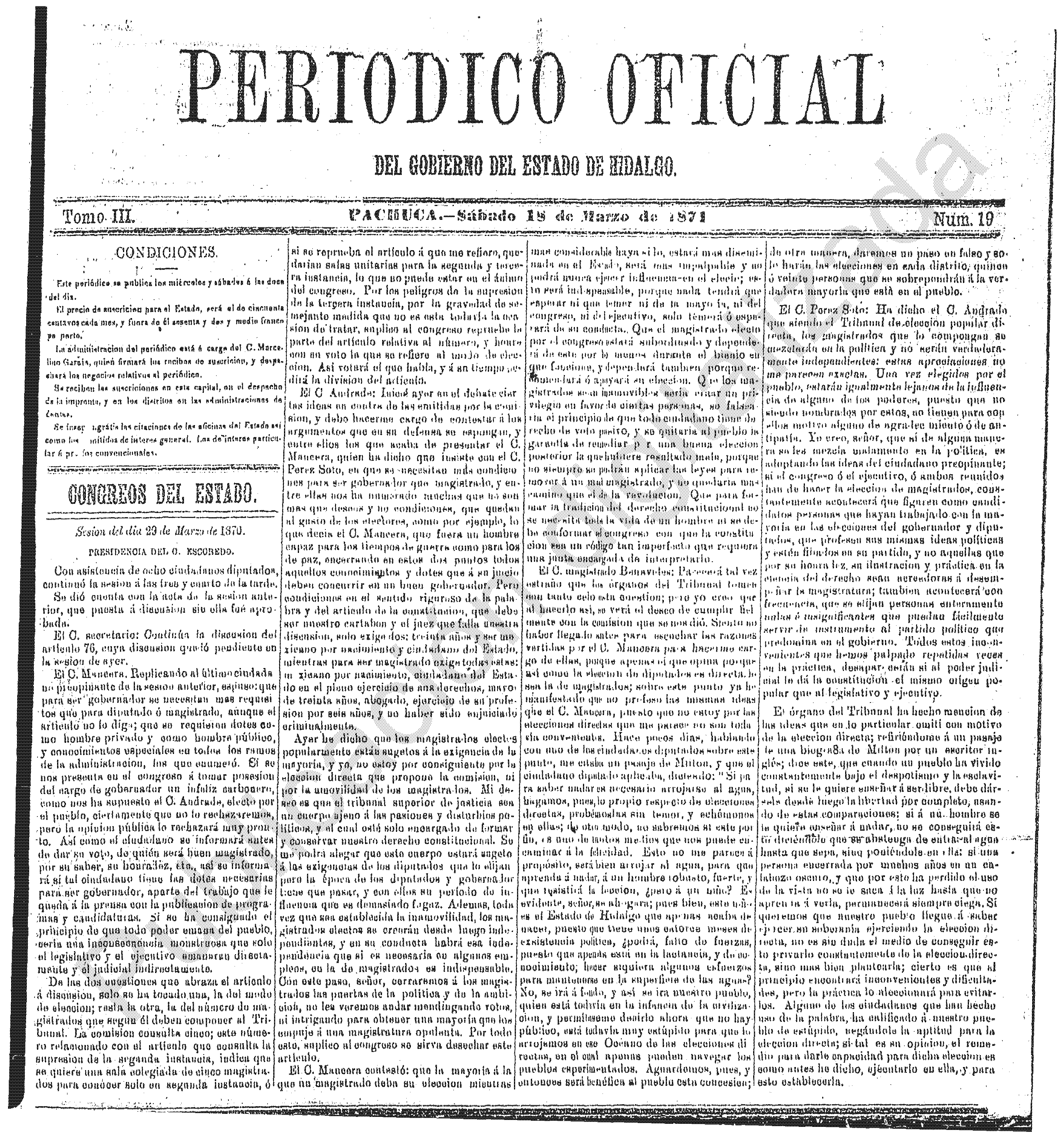 Descargar Periódico Oficial Ordinario 0 del 18 de marzo de 1871El portal web del Periódico Oficial del Estado de hidalgo es el único medio de difusión oficial del Gobierno del Estado de Hidalgo