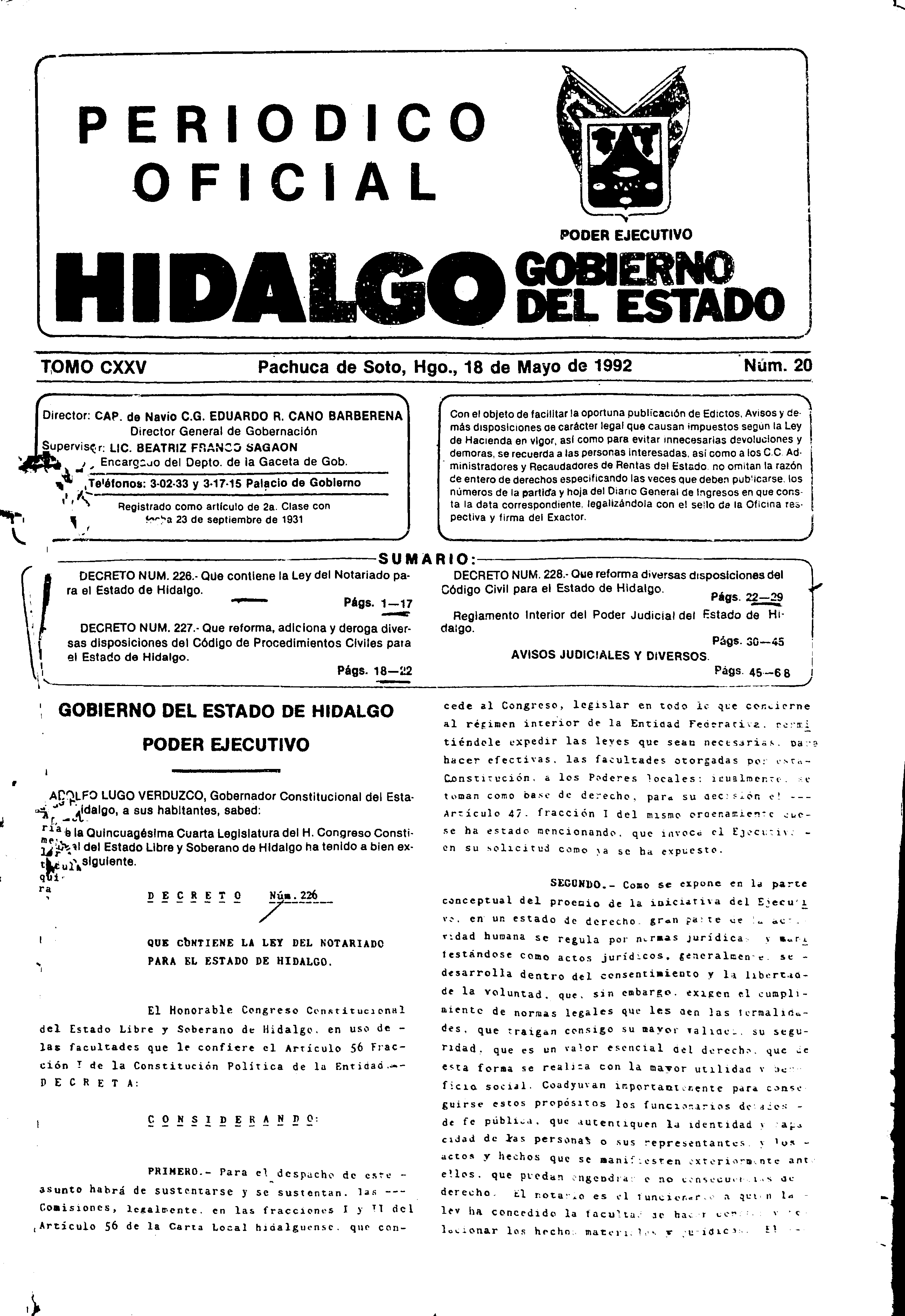 Descargar Periódico Oficial Ordinario 0 del 18 de mayo de 1992
