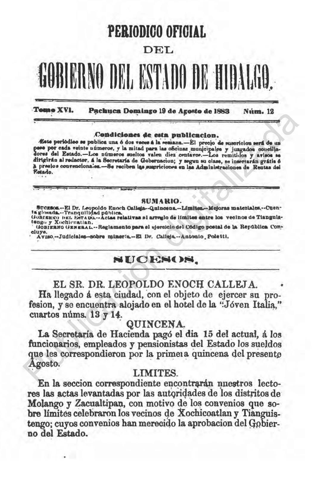 Descargar Periódico Oficial Ordinario 0 del 19 de agosto de 1883Tamaño 2.30 MB