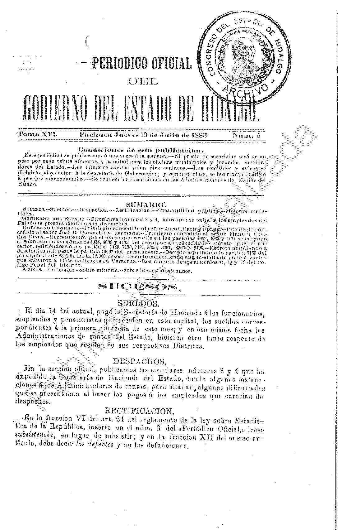 Periódico Oficial Ordinario 0 del 19 de julio de 1883