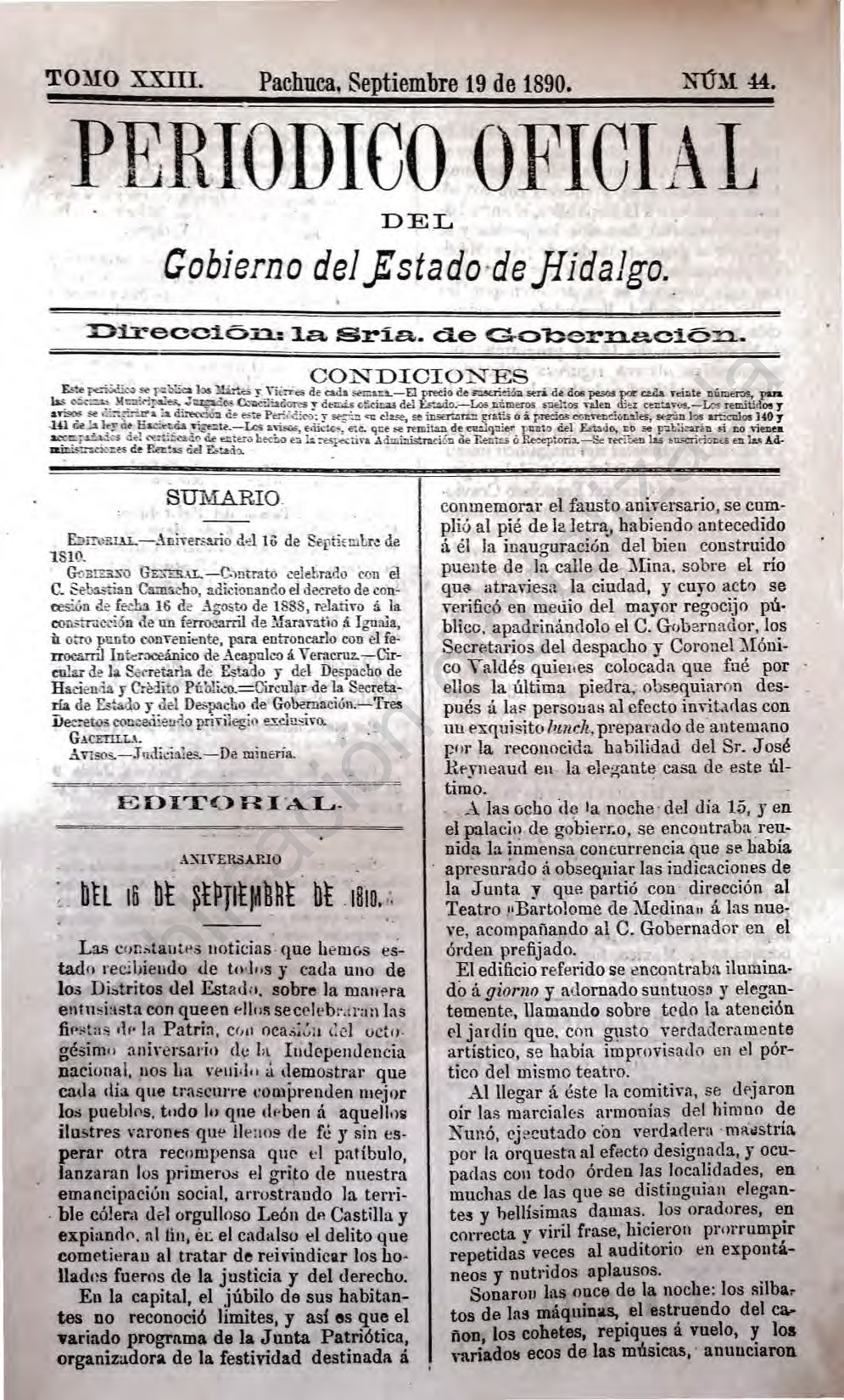 Descargar Periódico Oficial Ordinario 0 del 19 de septiembre de 1890Tamaño 1.76 MB