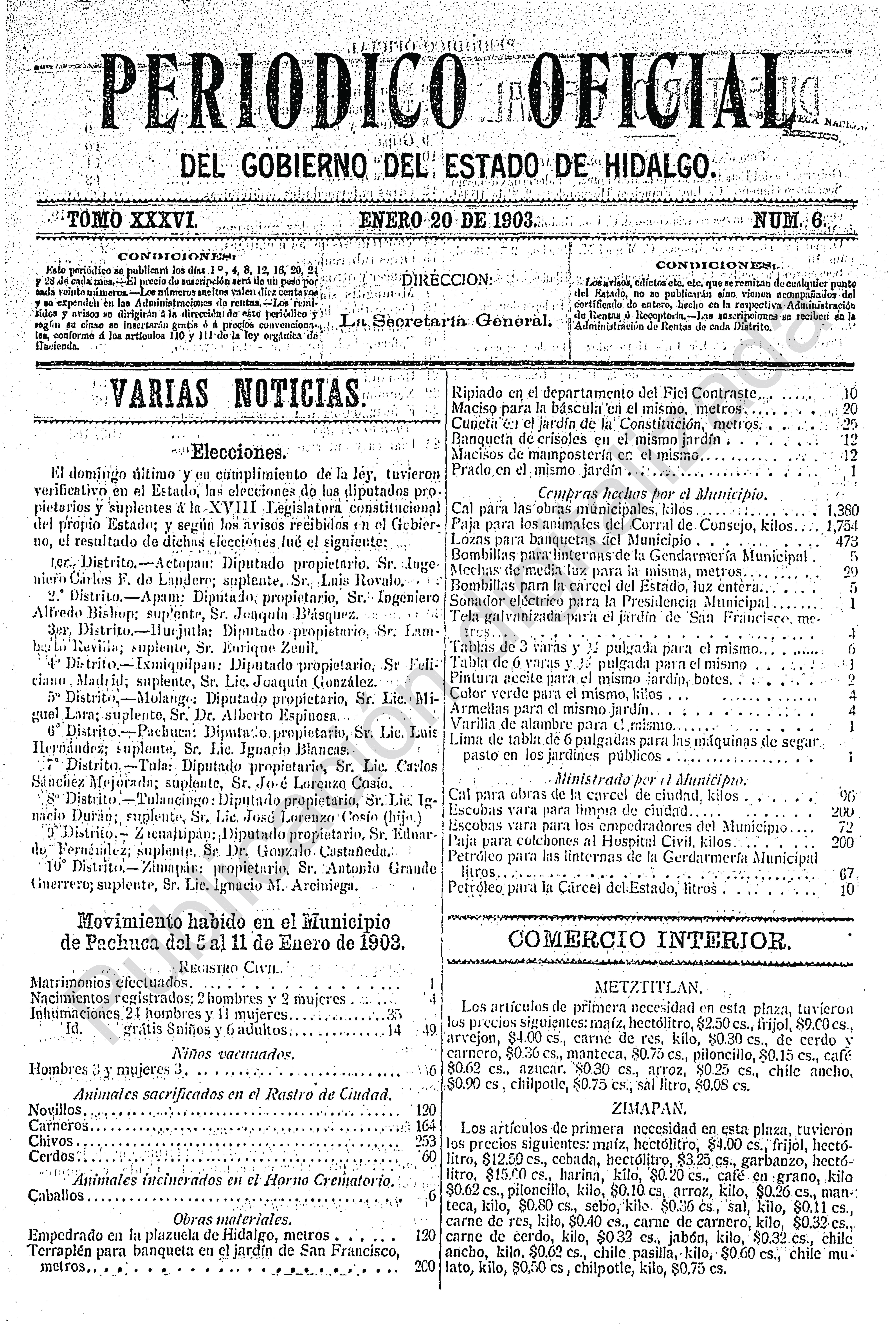 Periódico Oficial Ordinario 0 del 20 de enero de 1903