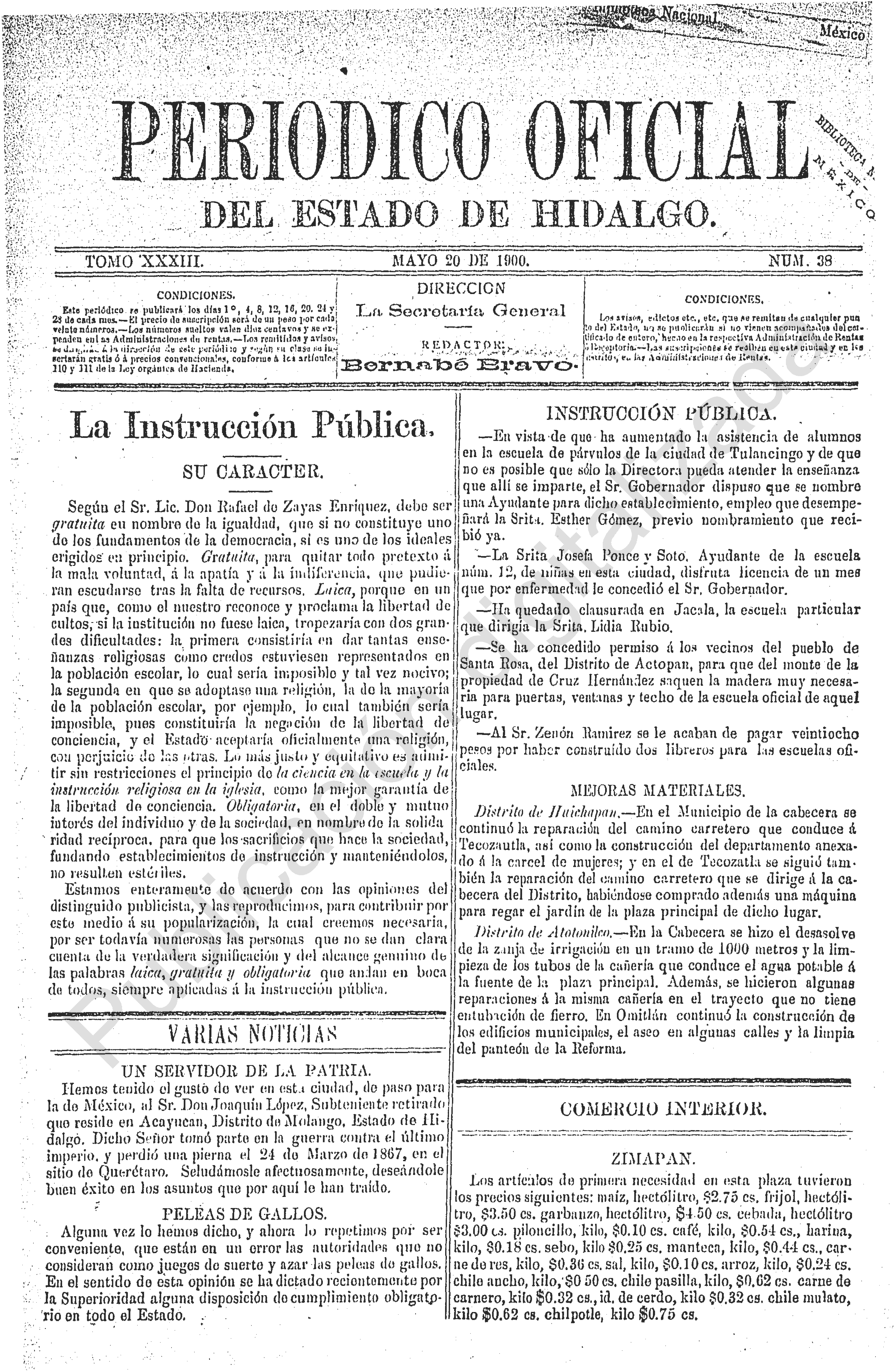 Descargar Periódico Oficial Ordinario 0 del 20 de mayo de 1900El portal web del Periódico Oficial del Estado de hidalgo es el único medio de difusión oficial del Gobierno del Estado de Hidalgo