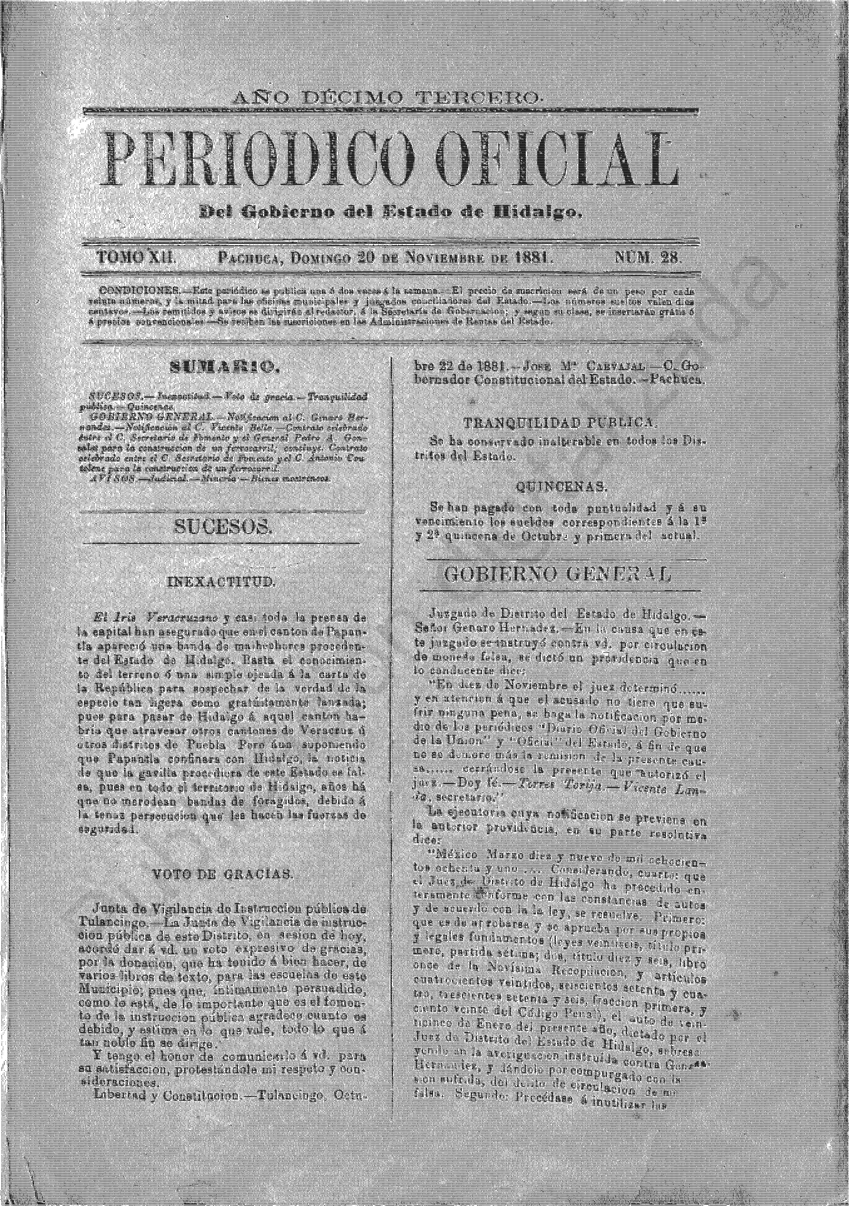 Descargar Periódico Oficial Ordinario 0 del 20 de noviembre de 1881Tamaño 2.10 MB
