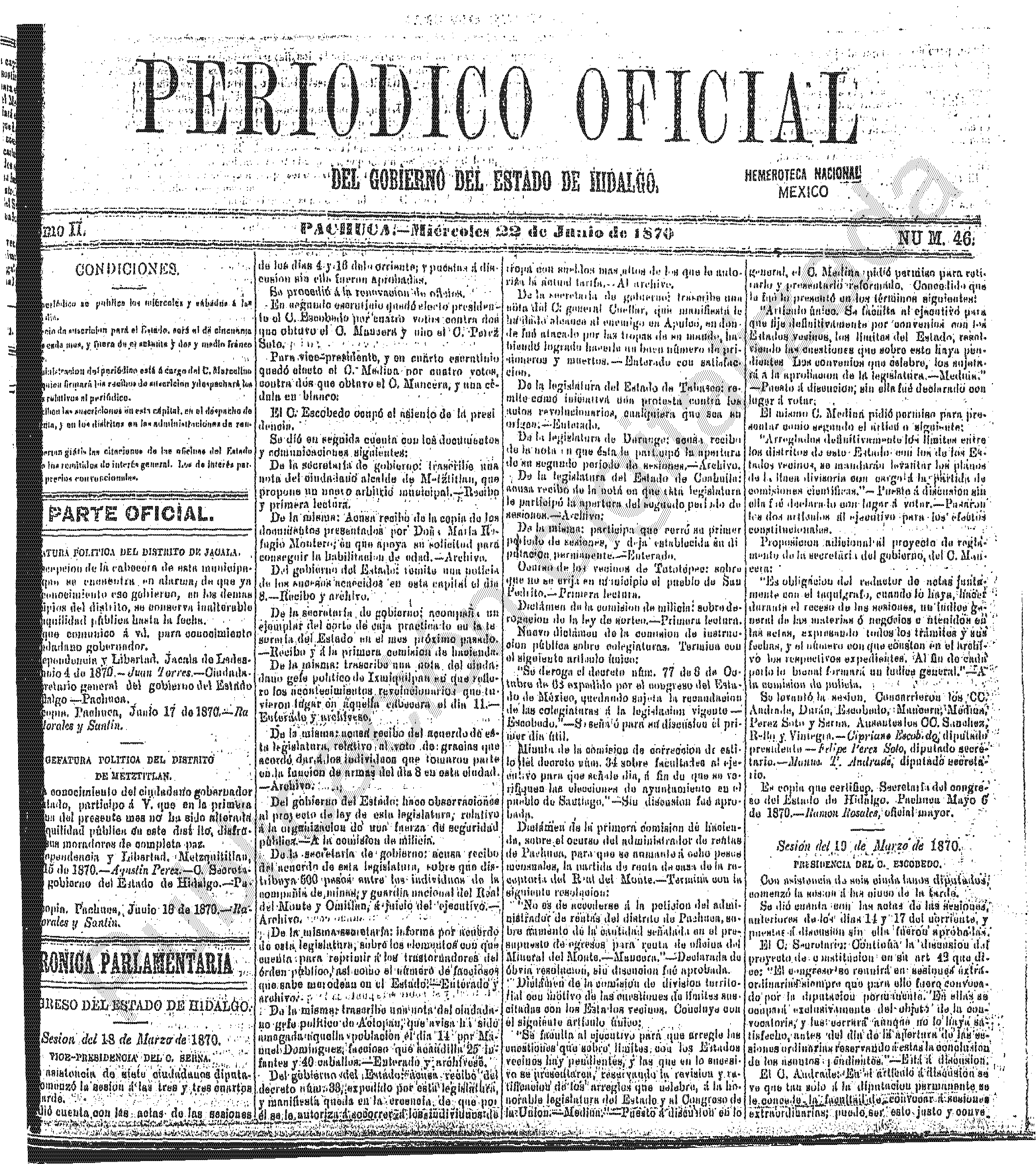 Descargar Periódico Oficial Ordinario 0 del 22 de junio de 1870El portal web del Periódico Oficial del Estado de hidalgo es el único medio de difusión oficial del Gobierno del Estado de Hidalgo