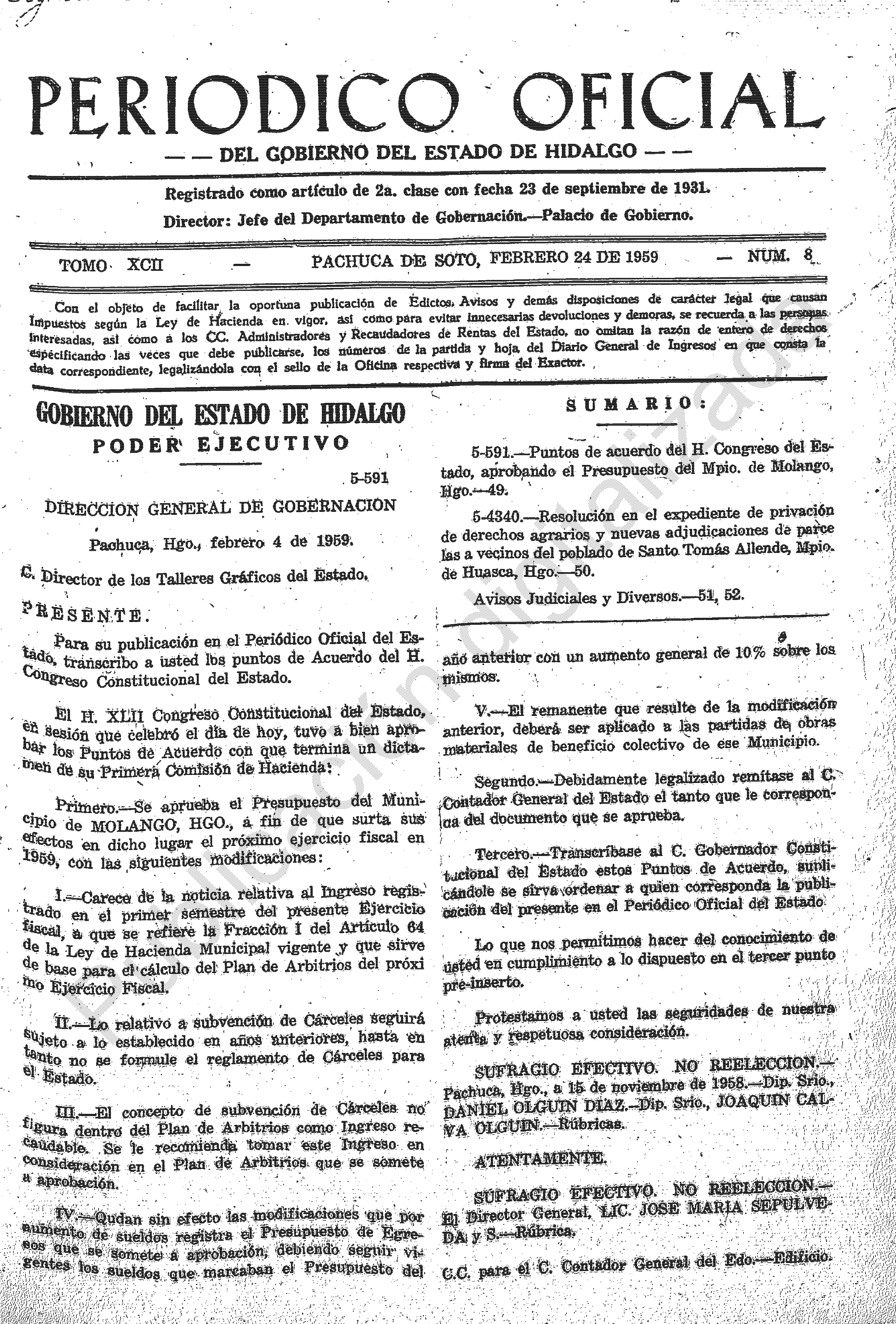 Descargar Periódico Oficial Ordinario 0 del 23 de febrero de 1959