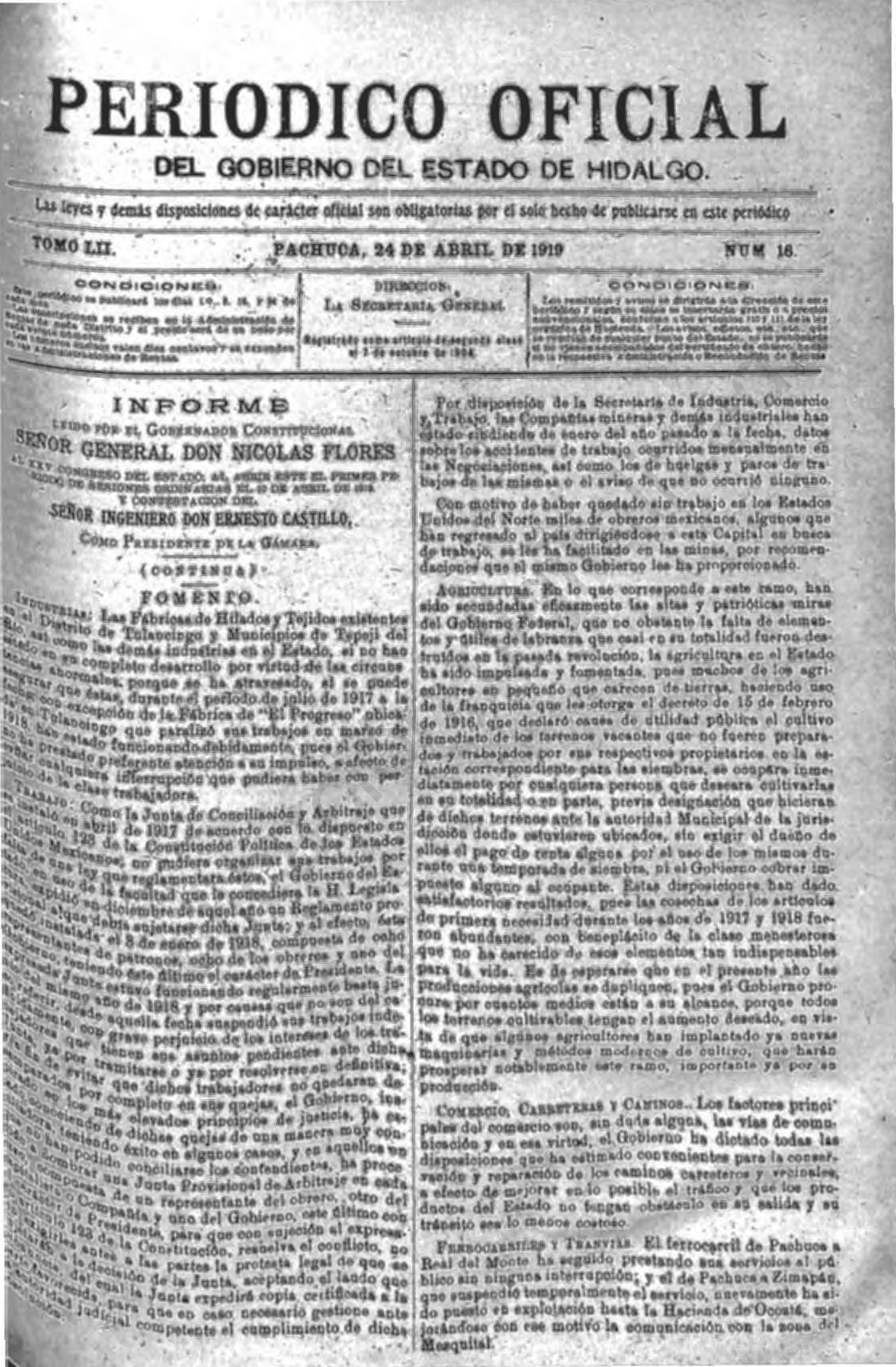 Periódico Oficial Ordinario 0 del 24 de abril de 1919