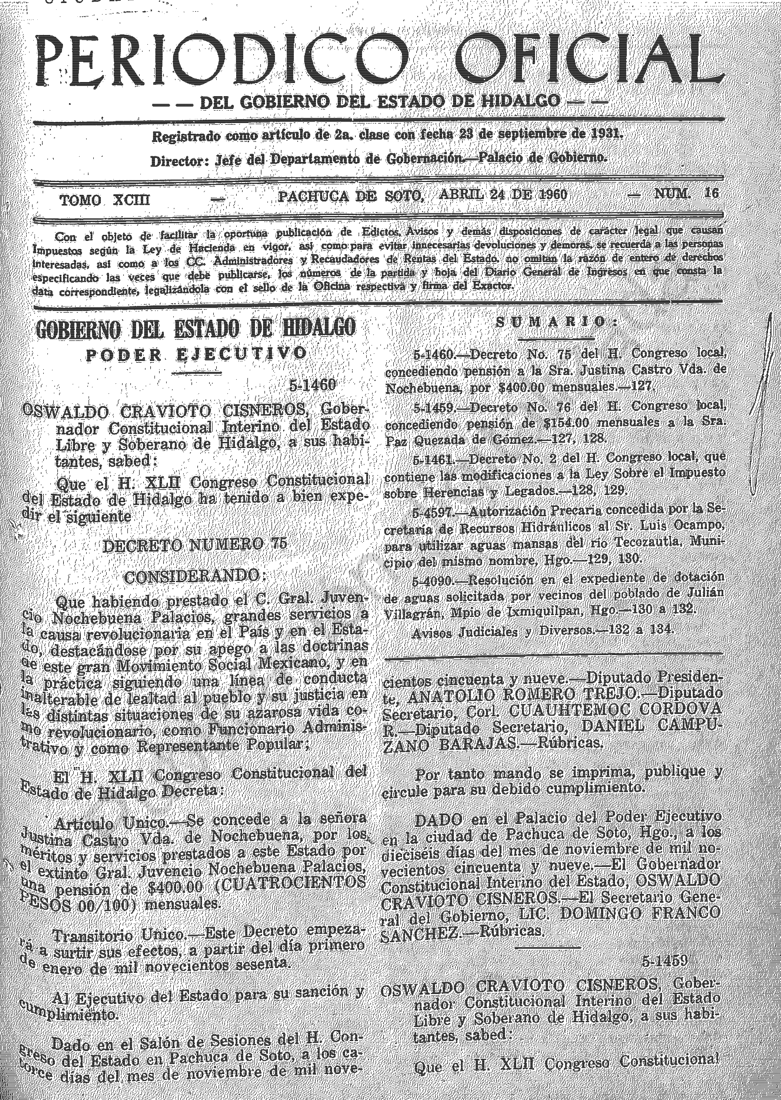 Descargar Periódico Oficial Ordinario 0 del 24 de abril de 1960El portal web del Periódico Oficial del Estado de hidalgo es el único medio de difusión oficial del Gobierno del Estado de Hidalgo