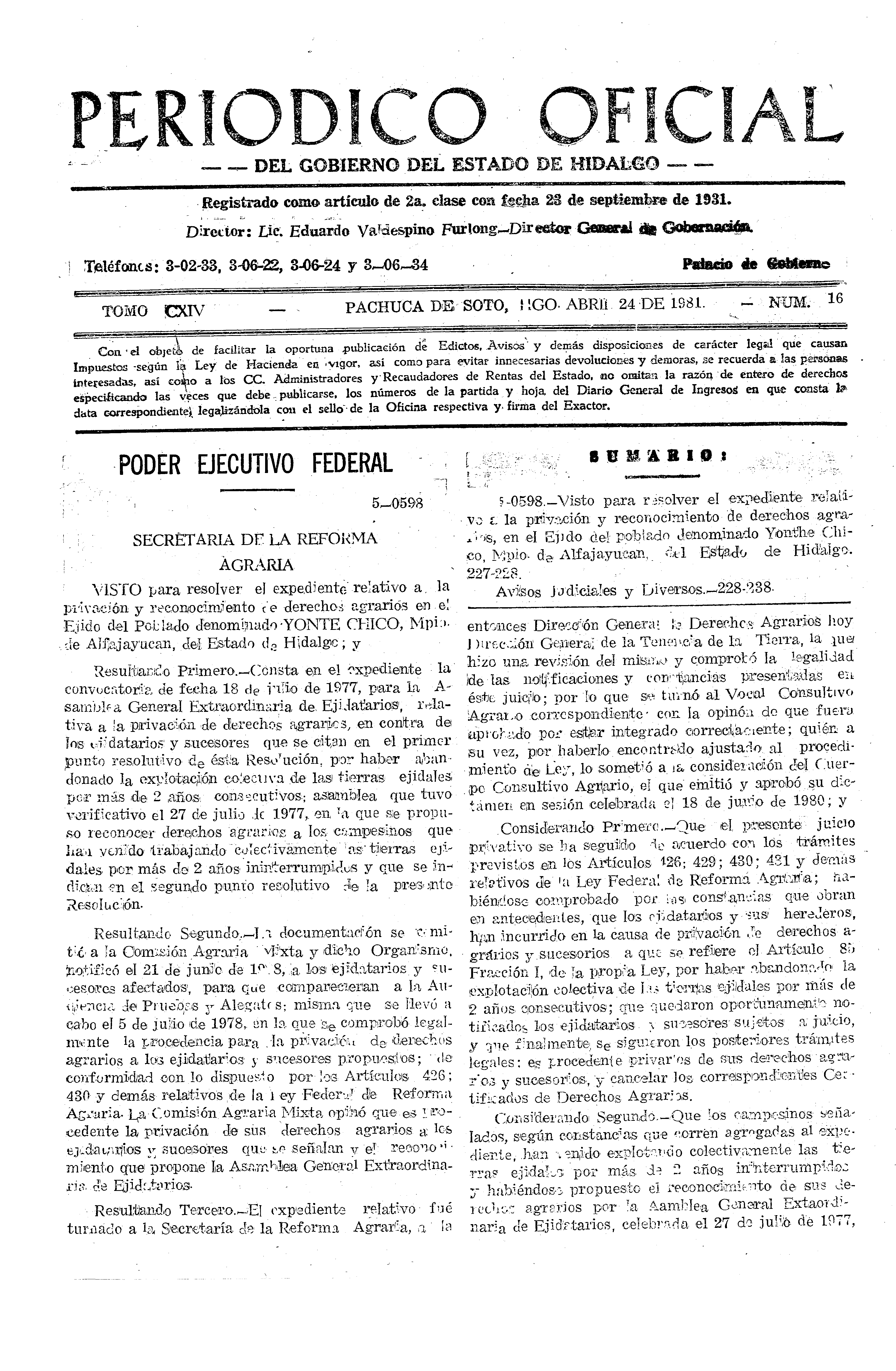 Descargar Periódico Oficial Ordinario 0 del 24 de abril de 1981