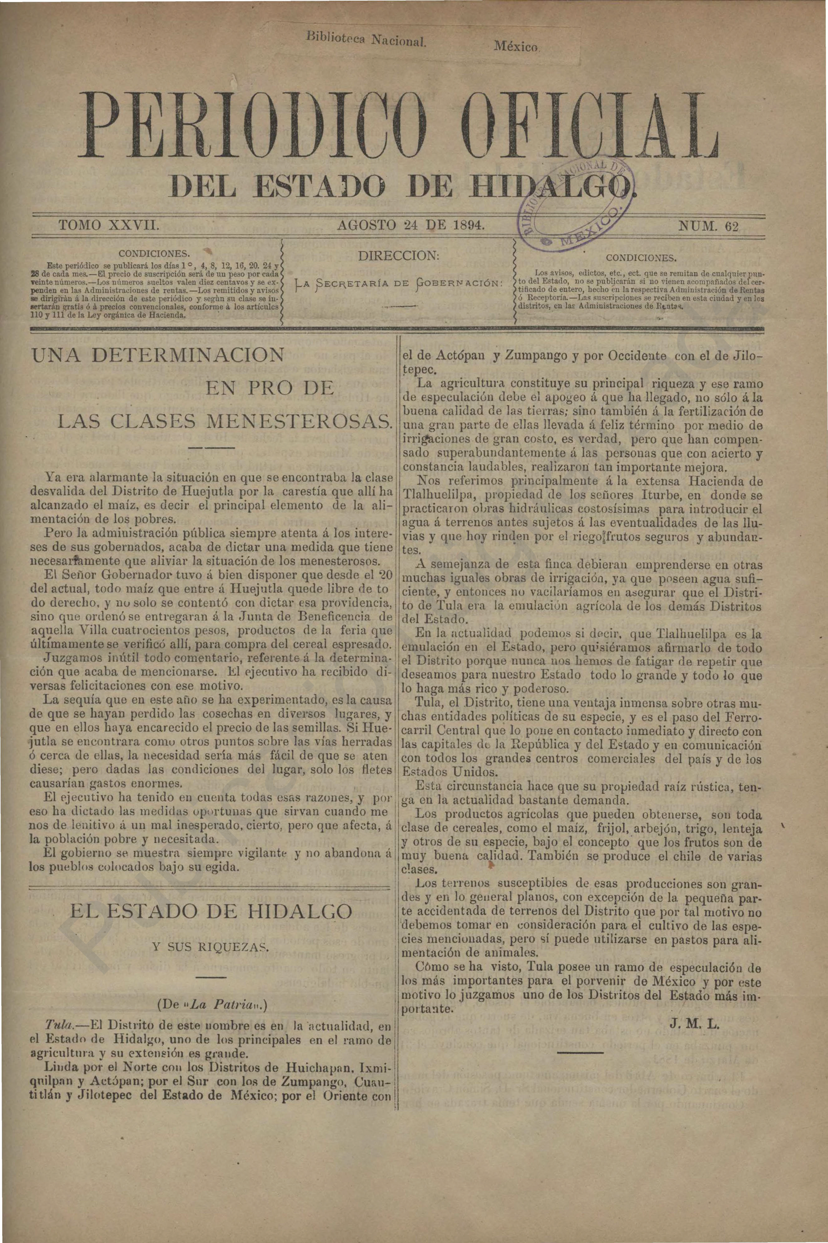 Periódico Oficial Ordinario 0 del 24 de agosto de 1894