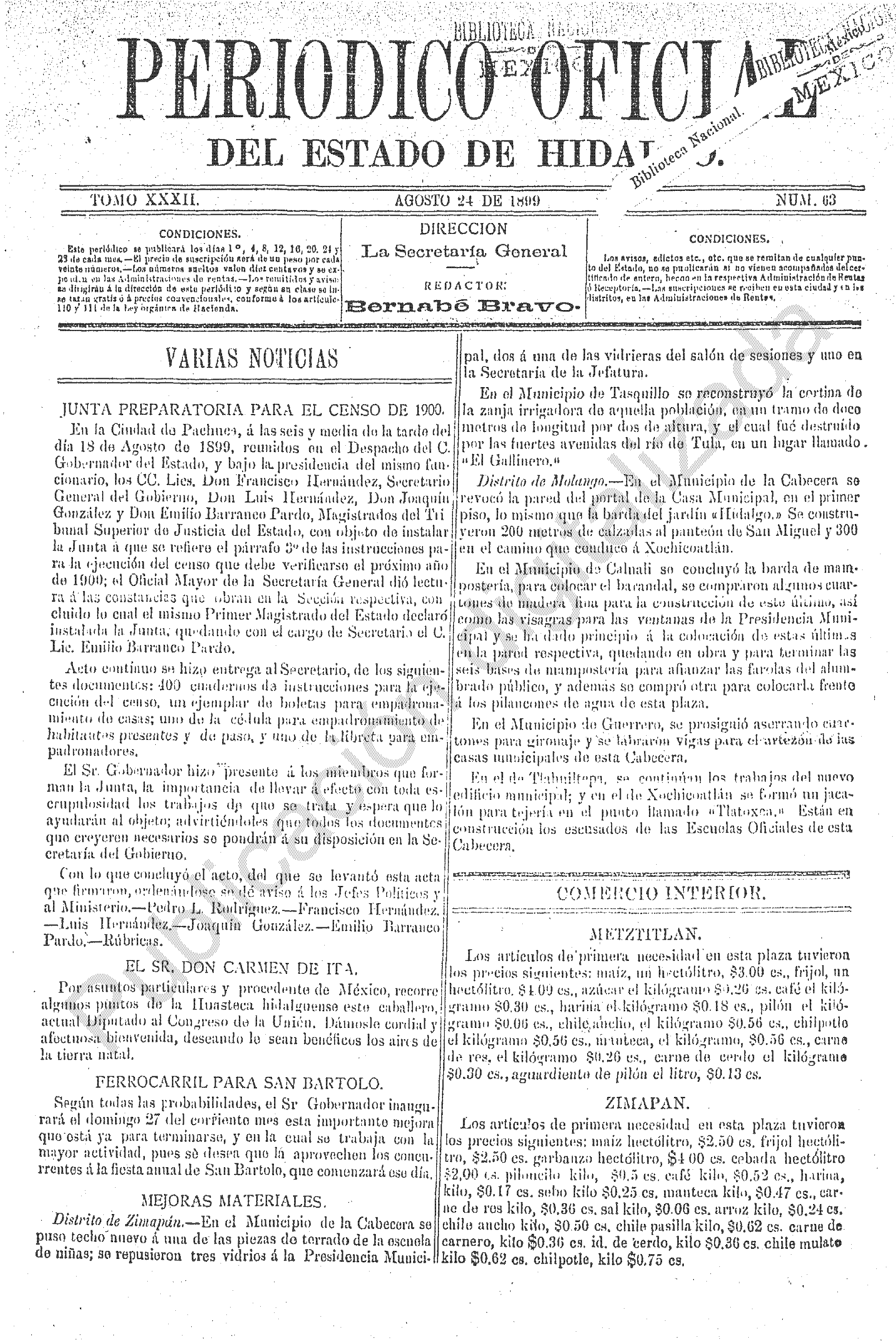Descargar Periódico Oficial Ordinario 0 del 24 de agosto de 1899Tamaño 850.44 KB
