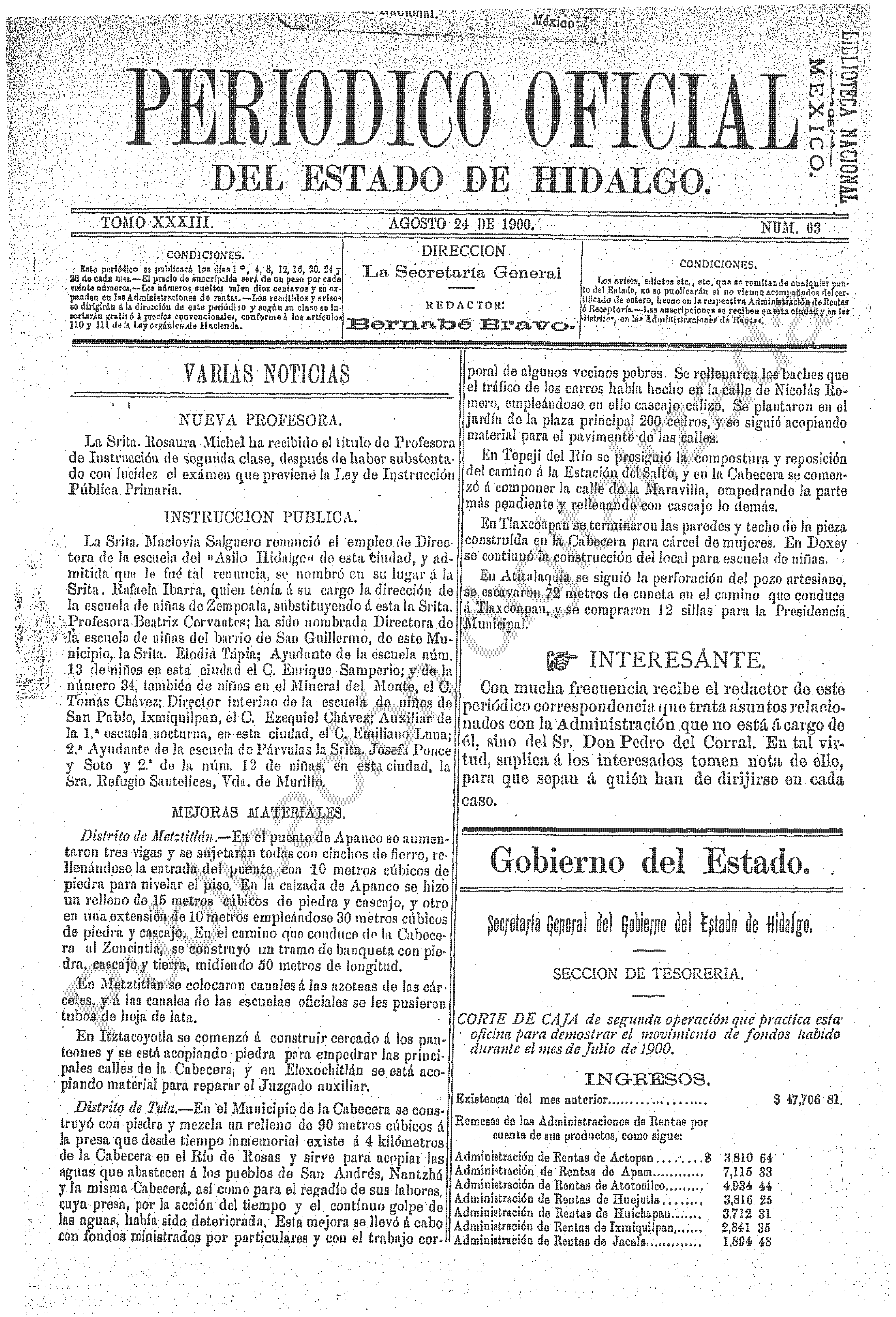 El portal web del Periódico Oficial del Estado de hidalgo es el único medio de difusión oficial del Gobierno del Estado de Hidalgo
