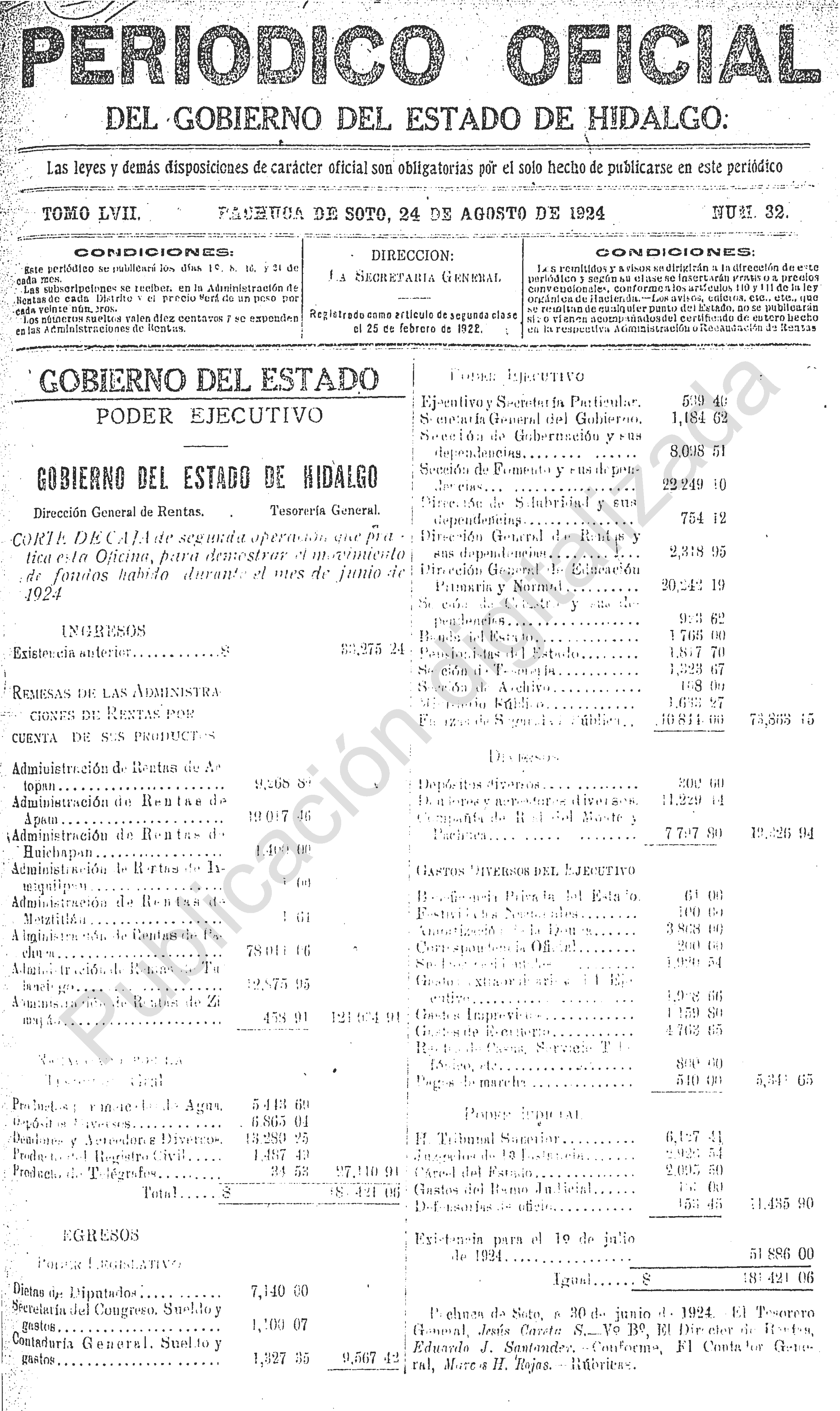 Descargar Periódico Oficial Ordinario 0 del 24 de agosto de 1924