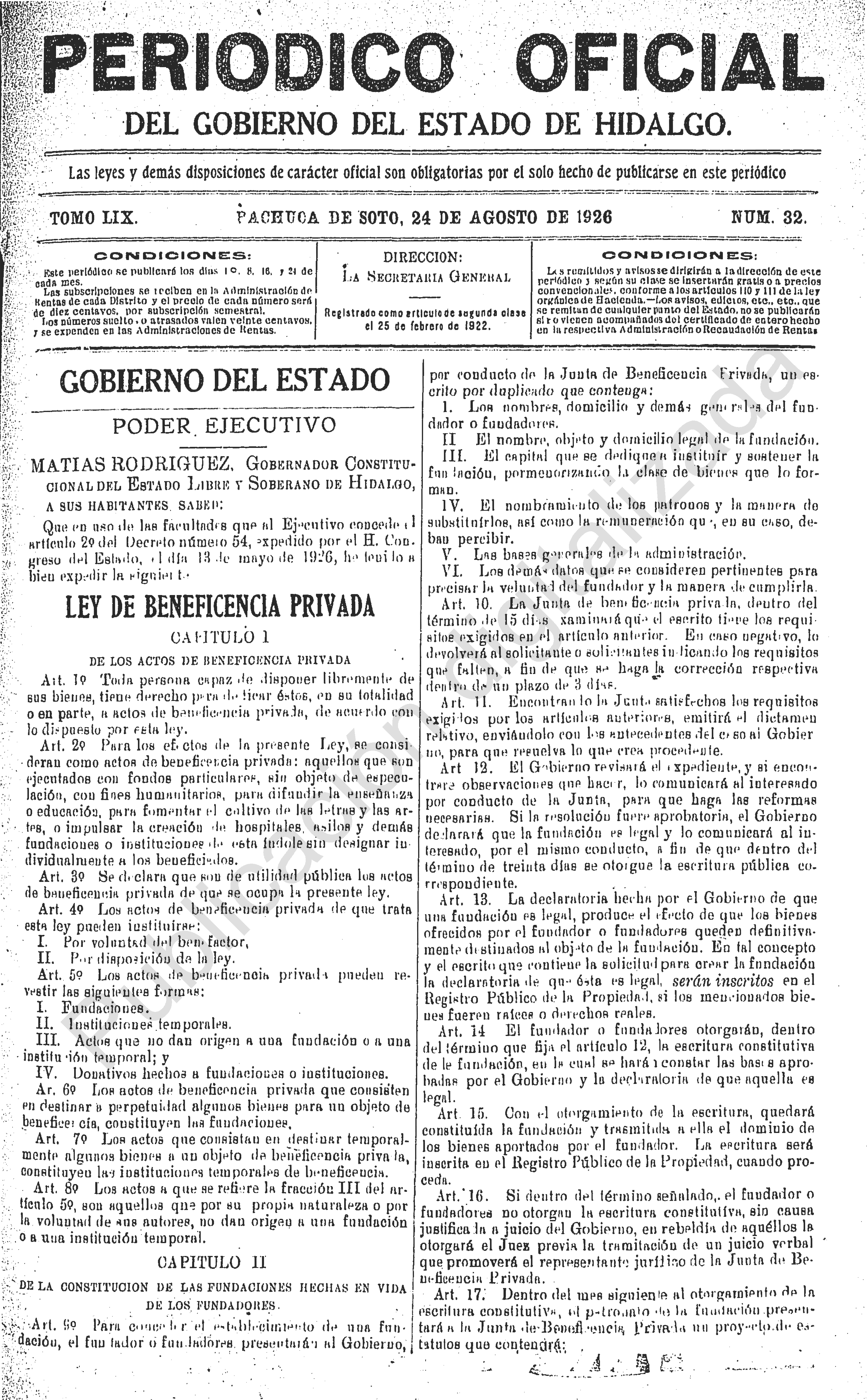 Descargar Periódico Oficial Ordinario 0 del 24 de agosto de 1926