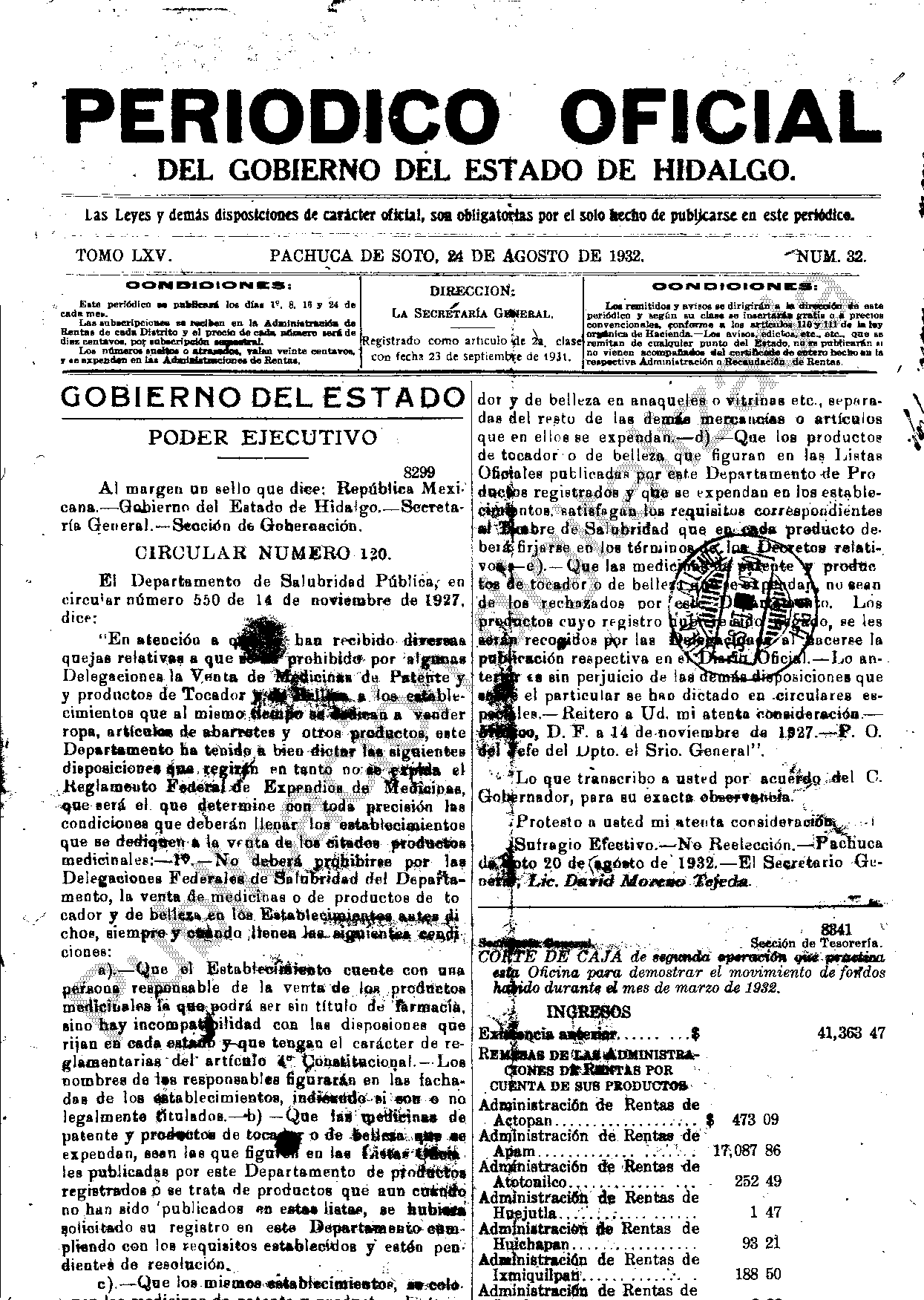 Descargar Periódico Oficial Ordinario 0 del 24 de agosto de 1932
