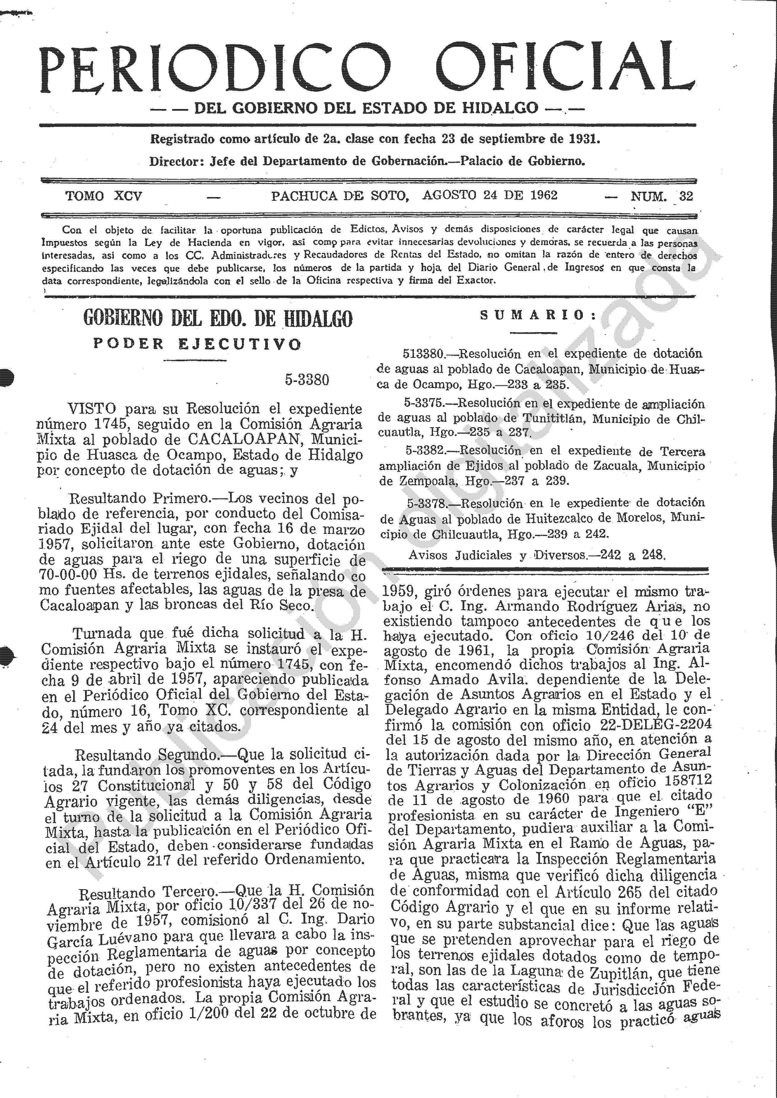 Descargar Periódico Oficial Ordinario 0 del 24 de agosto de 1962