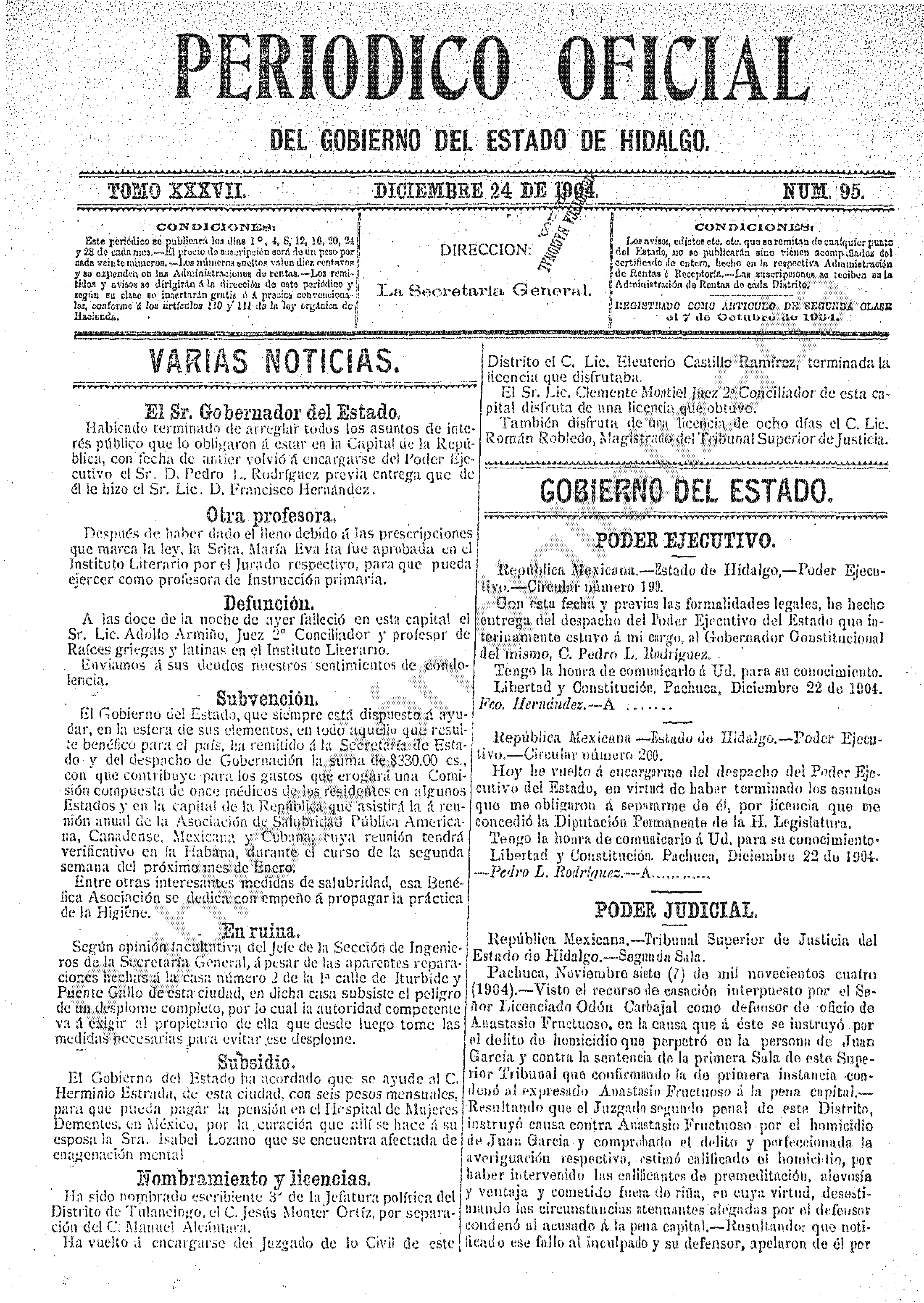 Periódico Oficial Ordinario 0 del 24 de diciembre de 1904