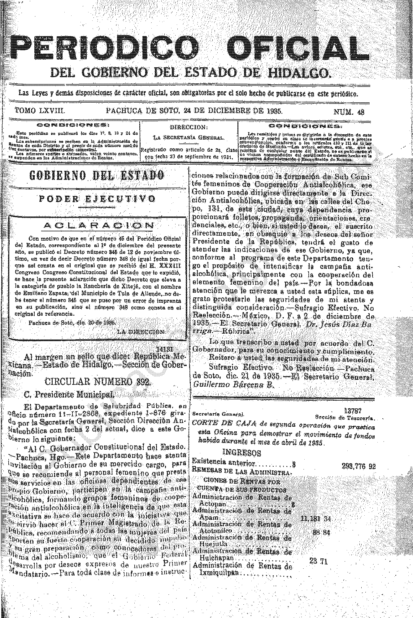Descargar Periódico Oficial Ordinario 0 del 24 de diciembre de 1935