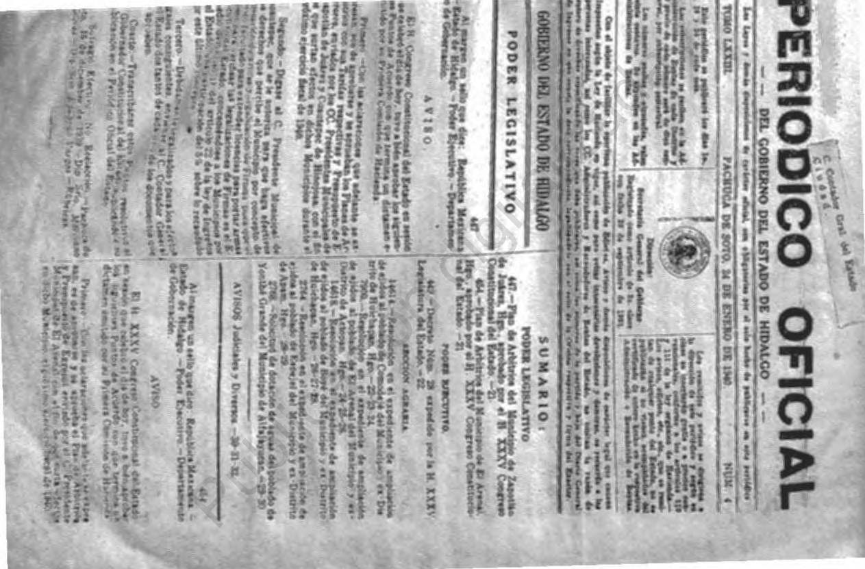 - 447.- Plan de Arbitrios del Municipio de Zapotlán de Juárez, Hgo., aprobado por el H. XXXV Congreso Constitucional del Estado.