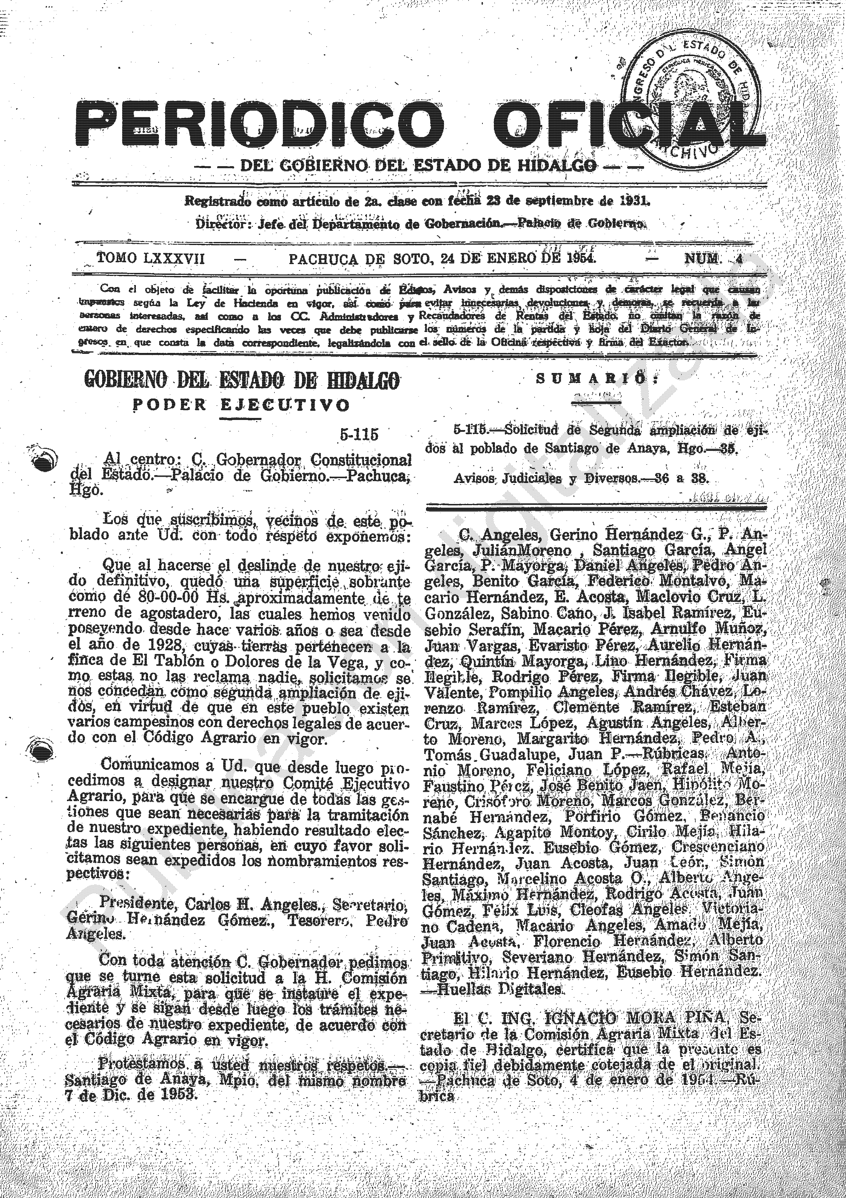 - 5-115.- Solicitud de Segunda ampliación de ejidos al poblado de Santiago de Anaya, Hgo.