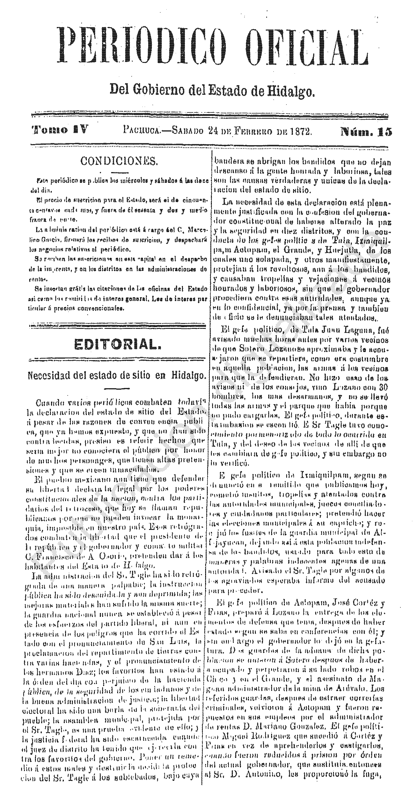 Descargar Periódico Oficial Ordinario 0 del 24 de febrero de 1872Tamaño 581.60 KB