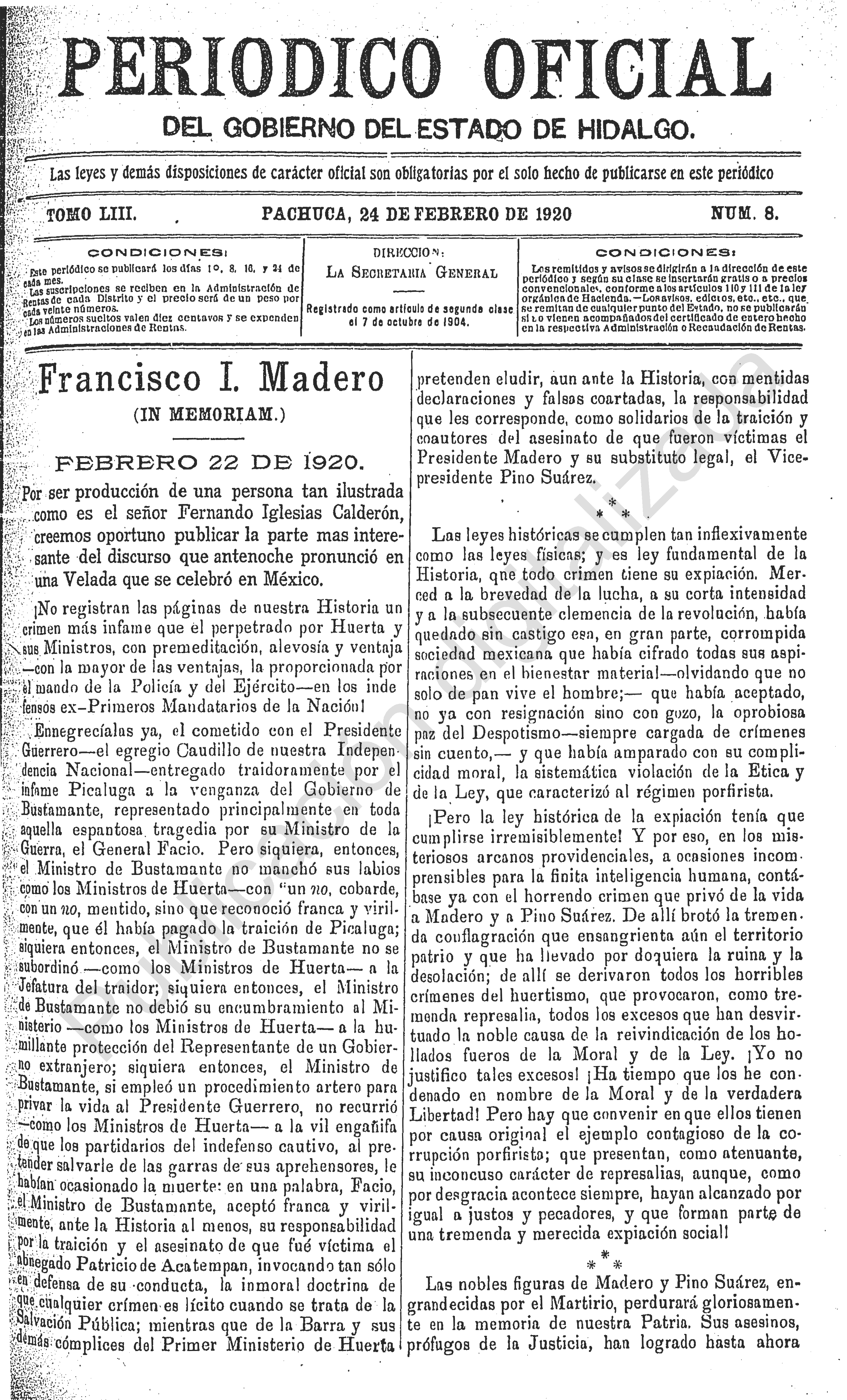 Descargar Periódico Oficial Ordinario 0 del 24 de febrero de 1920