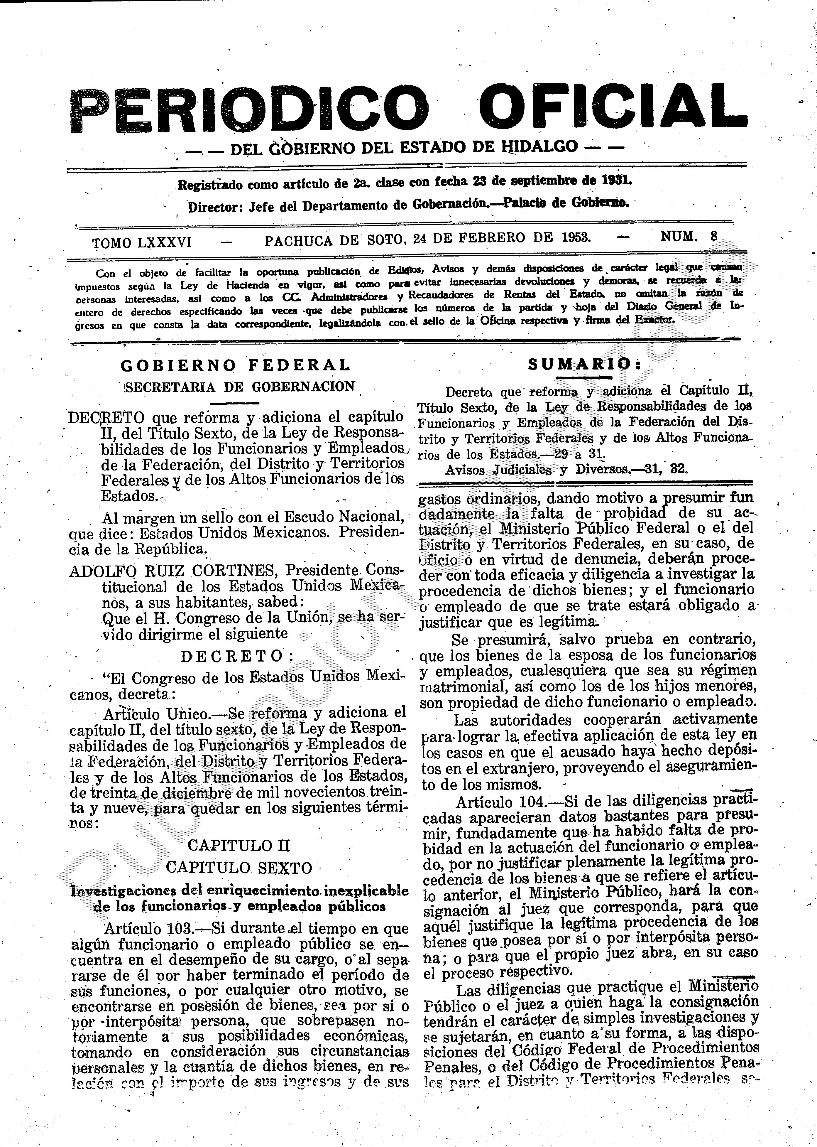 Descargar Periódico Oficial Ordinario 0 del 24 de febrero de 1953