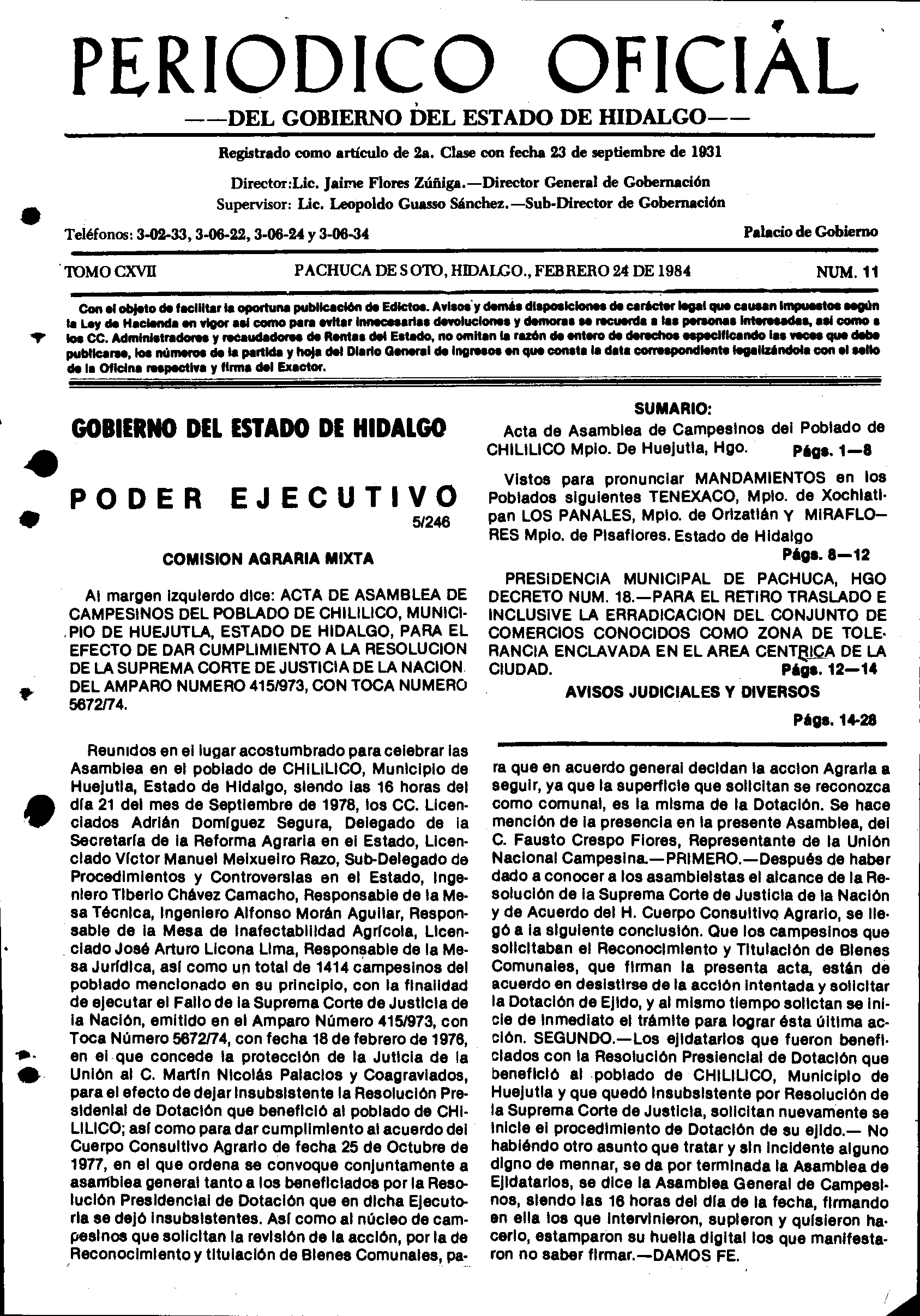 Periódico Oficial Ordinario 0 del 24 de febrero de 1984