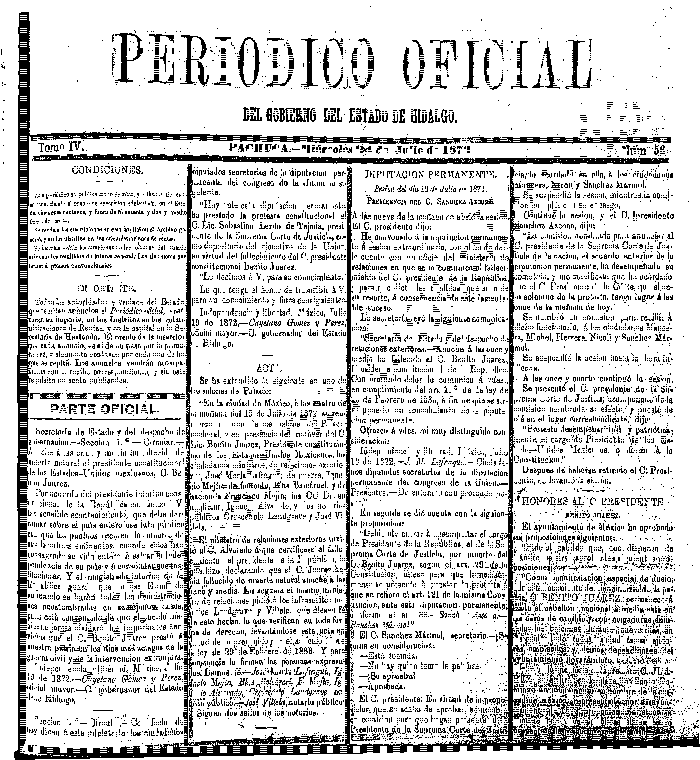 Periódico Oficial Ordinario 0 del 24 de julio de 1872