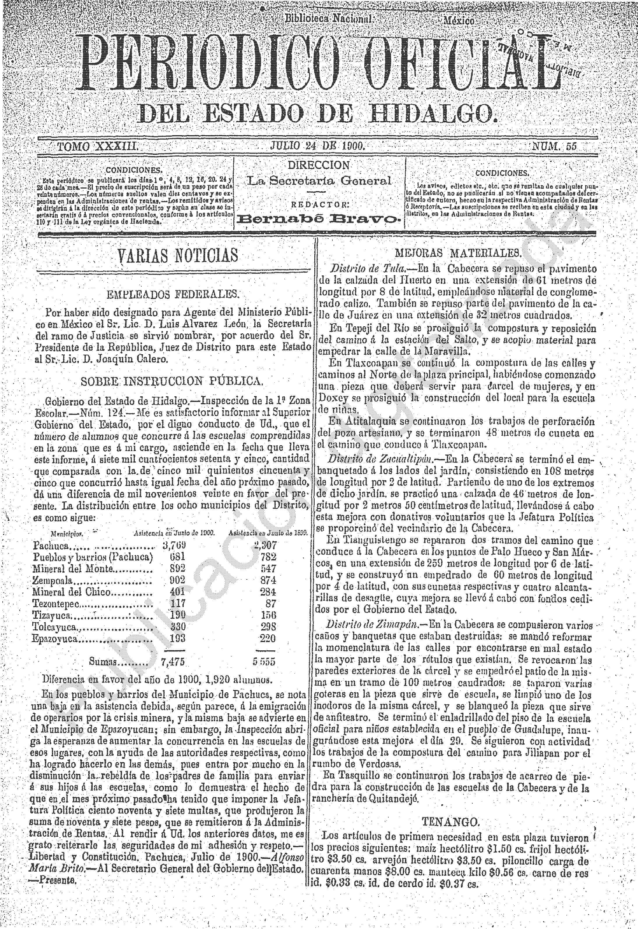 Periódico Oficial Ordinario 0 del 24 de julio de 1900