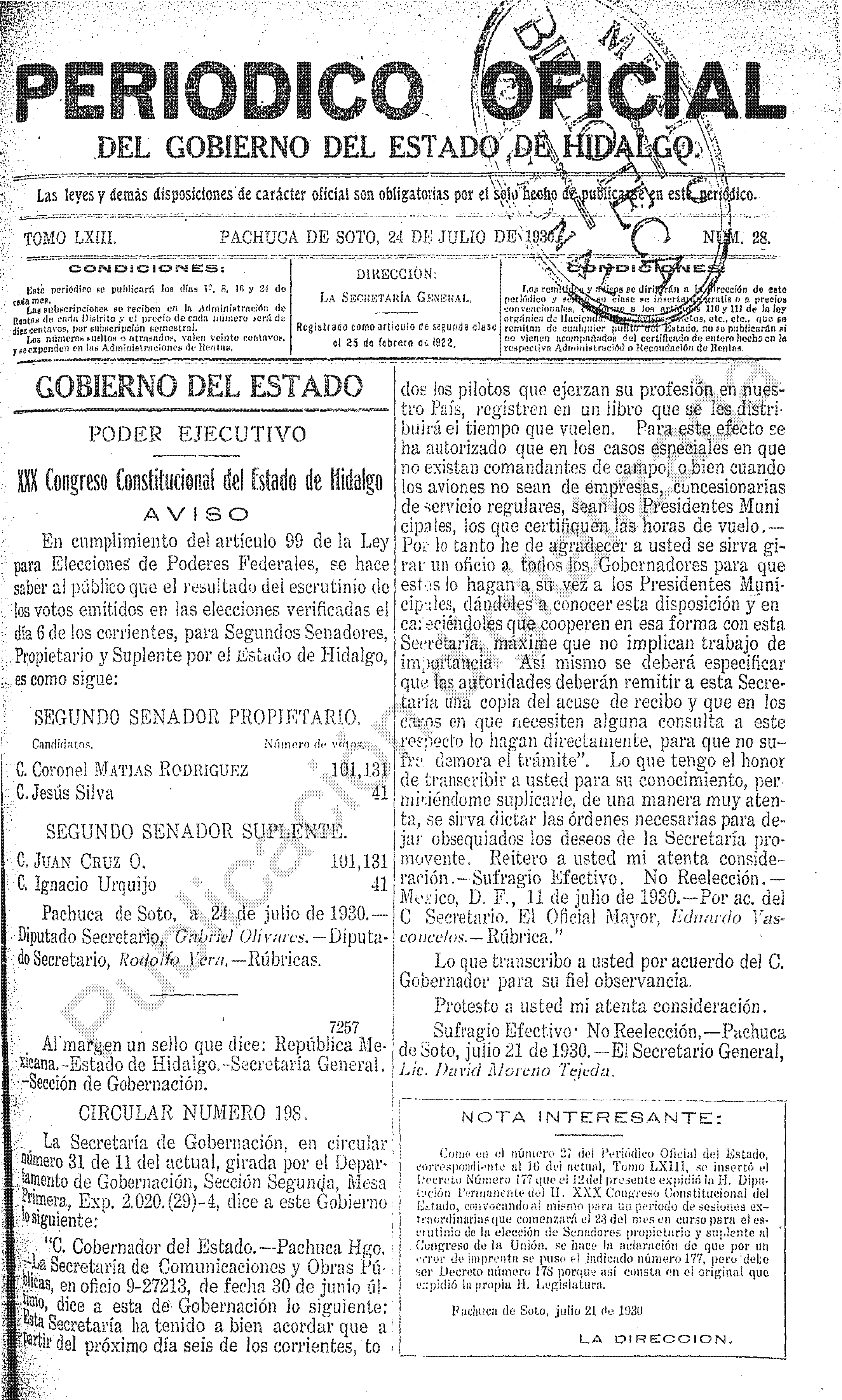 Descargar Periódico Oficial Ordinario 0 del 24 de julio de 1930