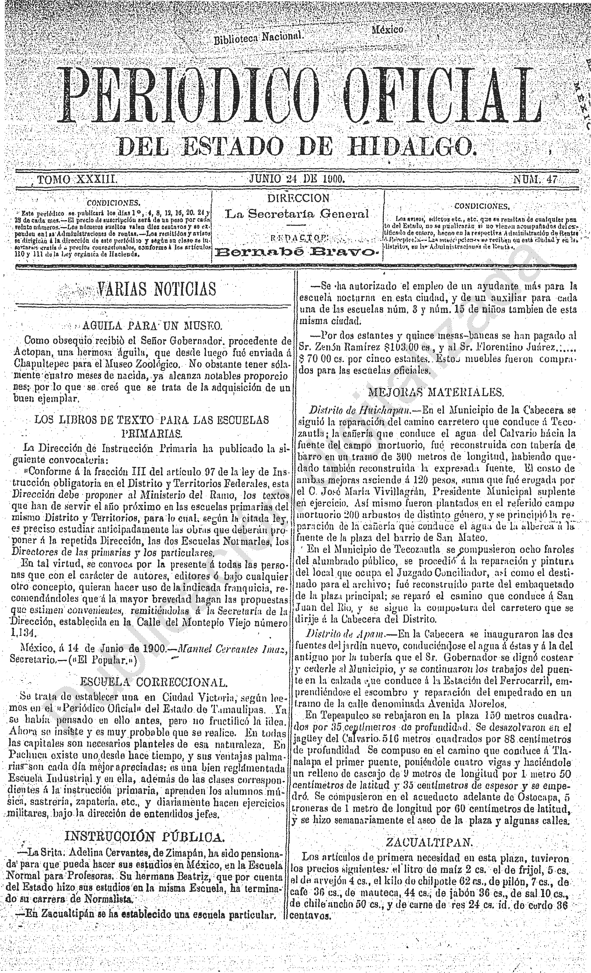 Descargar Periódico Oficial Ordinario 0 del 24 de junio de 1900Tamaño 1.30 MB