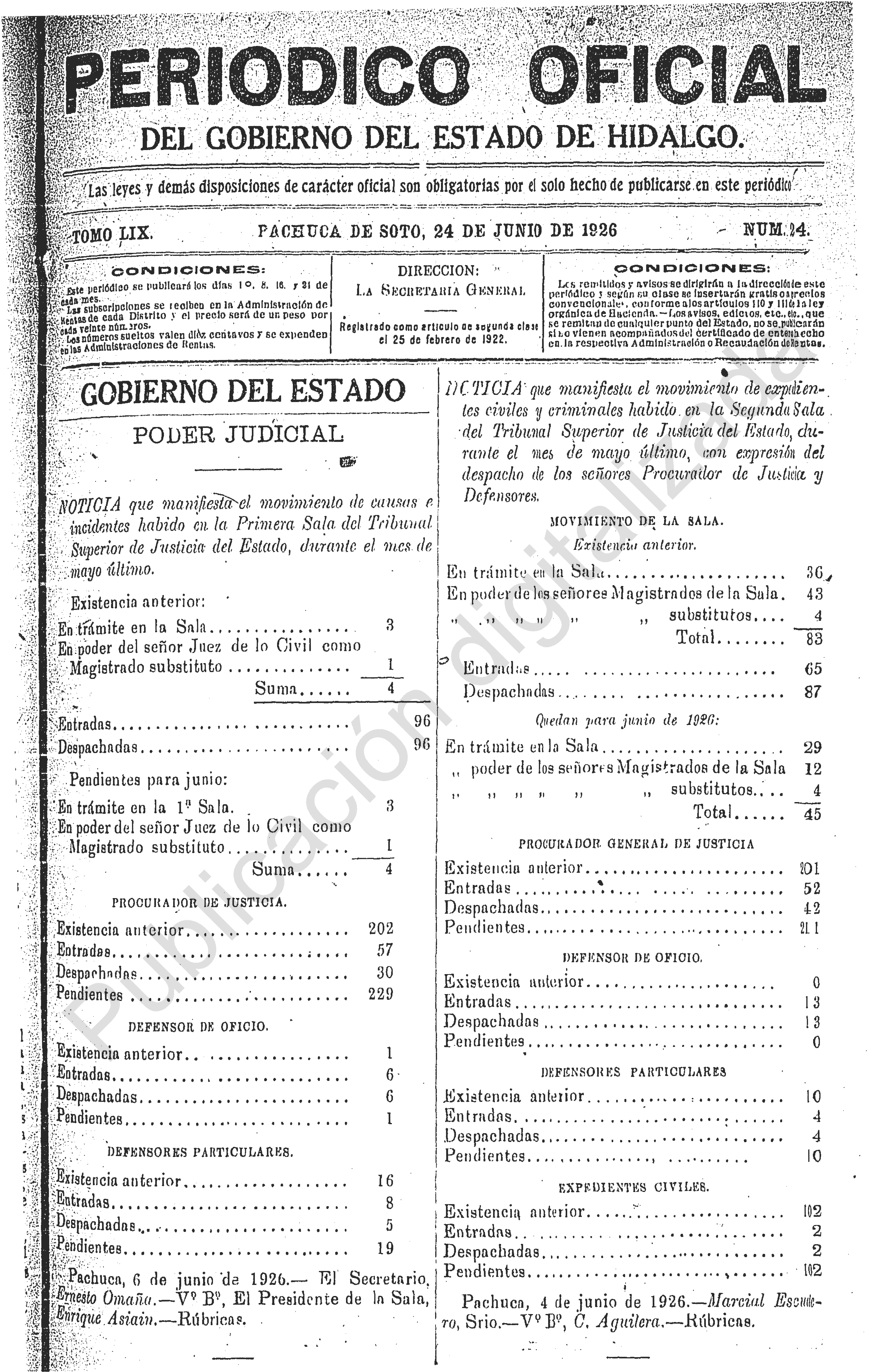 - Poder Judicial.- Noticia que manifiesta el movimiento de causas e incidentes habido en la Primera Sala del Tribunal Superior de Justicia del Estado, durante el mes de mayo.