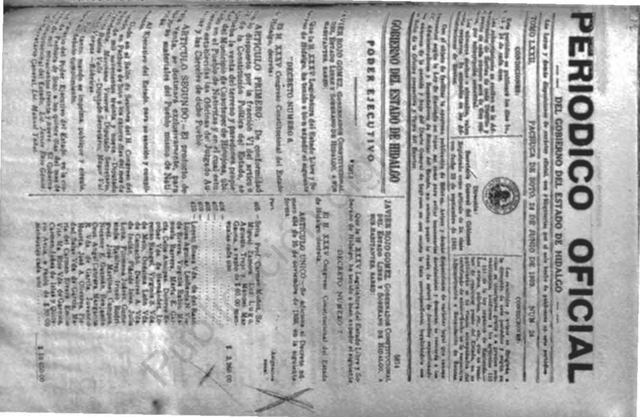 - 5813.- La H. XXXV Legislatura del Estado Libre y Soberano de Hidalgo, ha tenido a bien expedir el siguiente, Decreto Número 6, El H. XXXV Congreso Constitucional del Estado de Hidalgo.