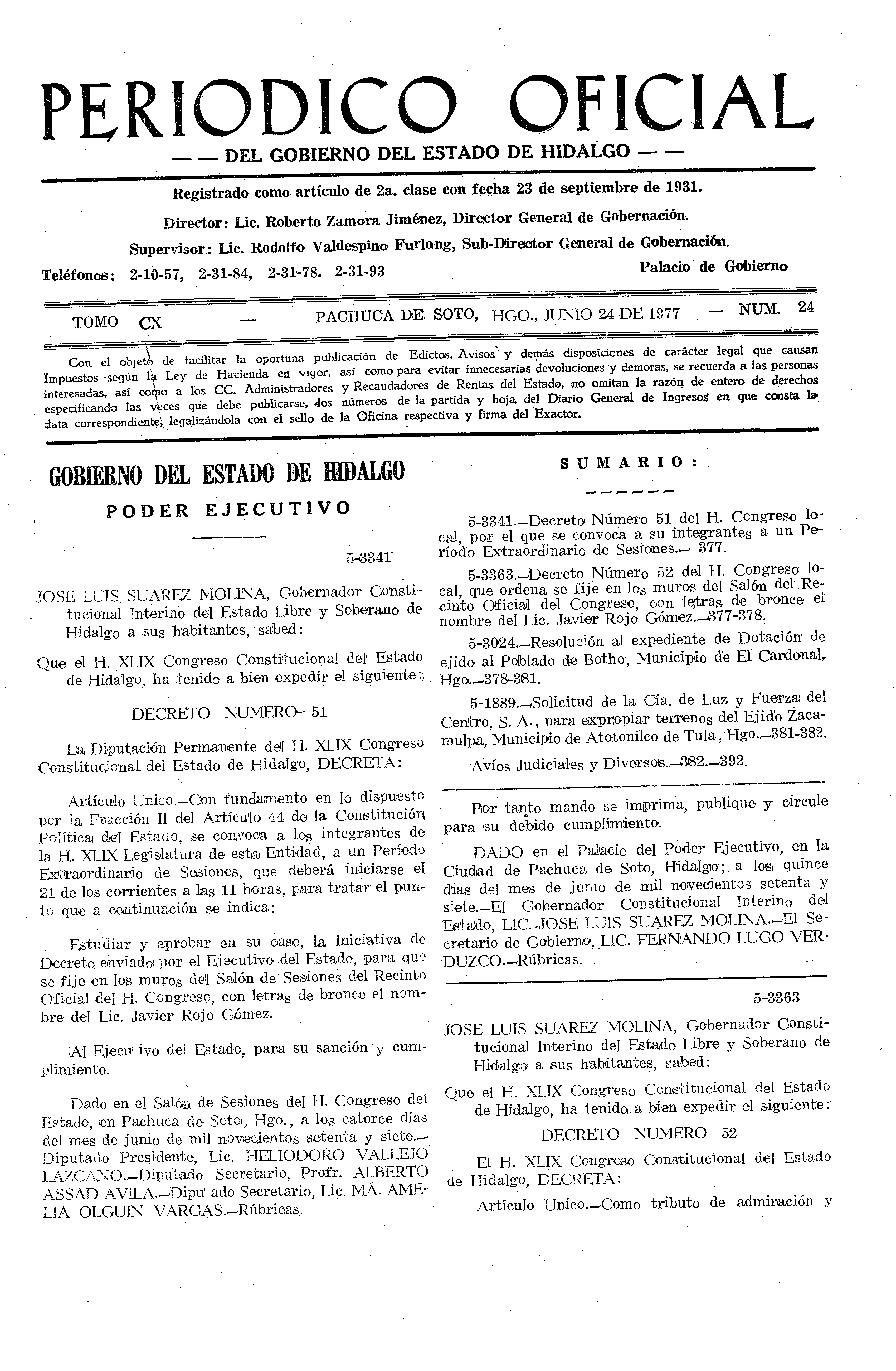 Descargar Periódico Oficial Ordinario 0 del 24 de junio de 1977