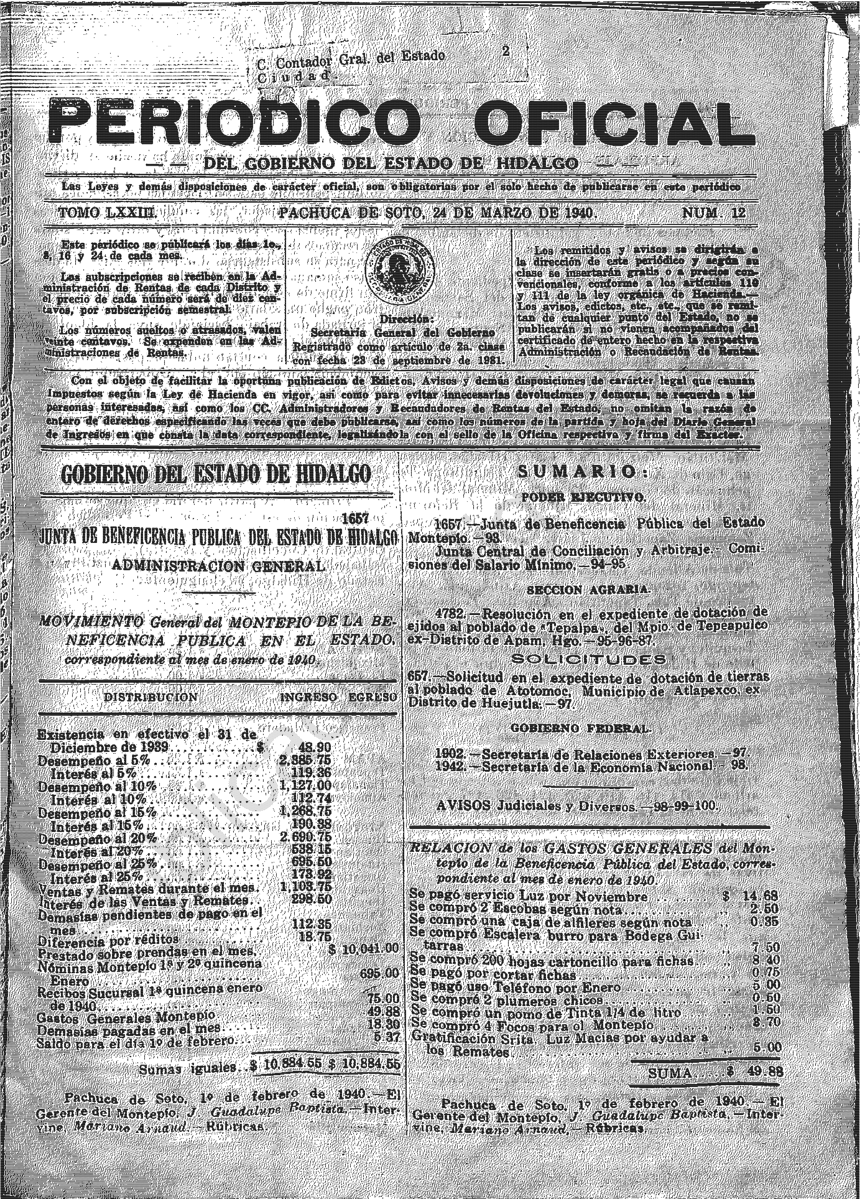 Descargar Periódico Oficial Ordinario 0 del 24 de marzo de 1940