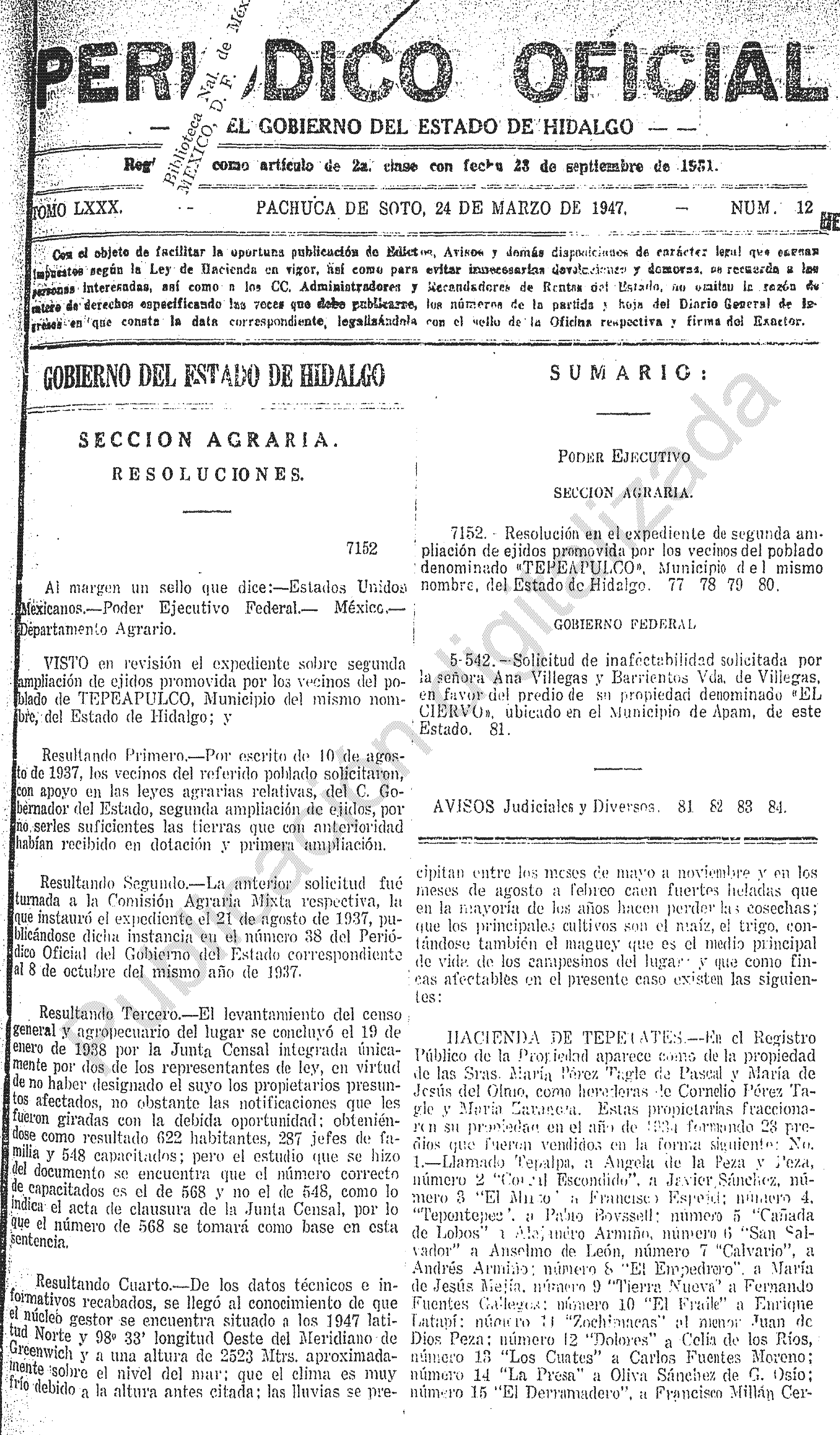Descargar Periódico Oficial Ordinario 0 del 24 de marzo de 1947