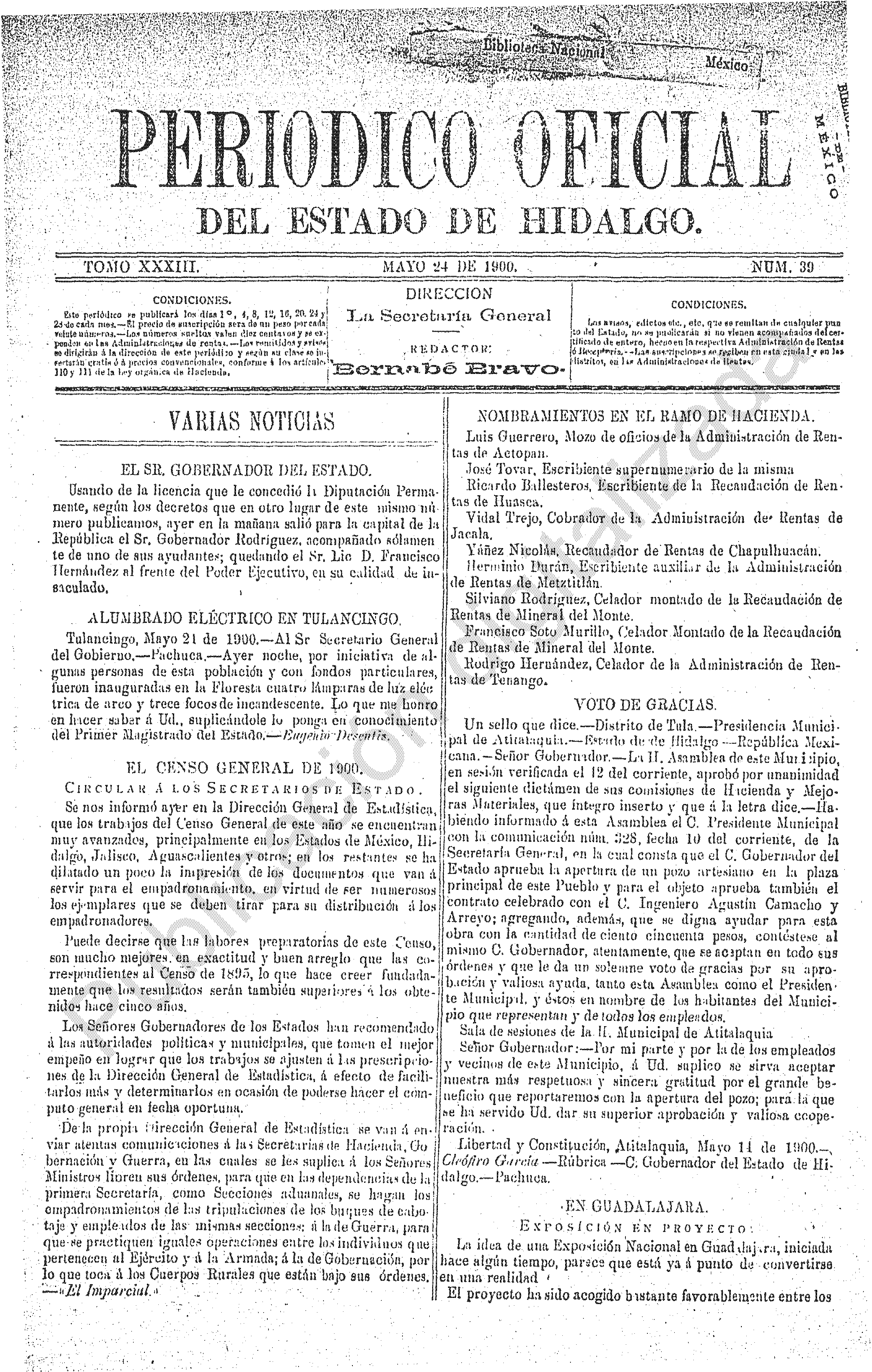 Descargar Periódico Oficial Ordinario 0 del 24 de mayo de 1900El portal web del Periódico Oficial del Estado de hidalgo es el único medio de difusión oficial del Gobierno del Estado de Hidalgo